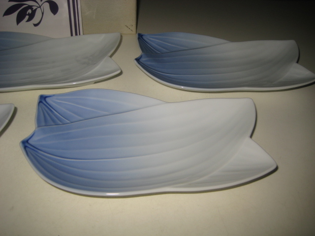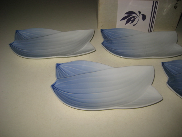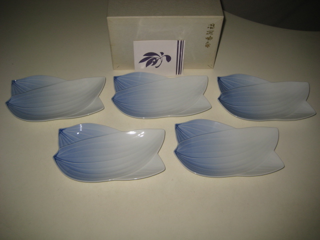 香蘭社 白磁染笹紋 銘々皿 笹 SASA 彫刻皿 5枚 セット 箱付 リーフ 766-FQS