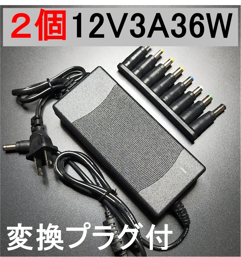 2個セット 変換プラグ付 ACアダプター 12V3A プラグ5.5×2.5/2.1mm ノイズフィルター(12V 2.5A 2A 1.5A) AC スイッチング 電源 アダプター