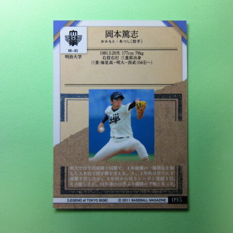 BBM2011 東京六大学野球カード 英雄伝説 #093 岡本 篤志
