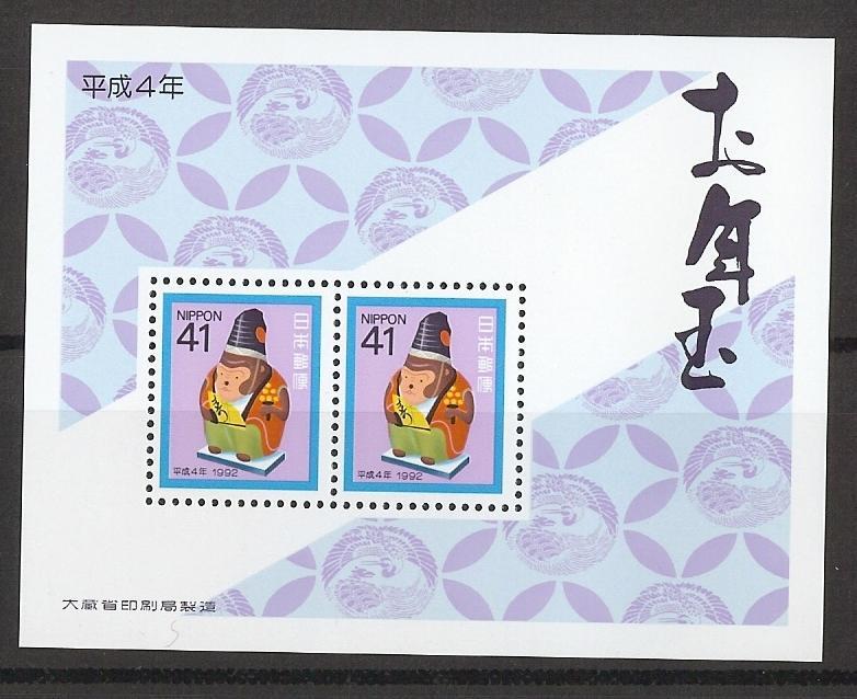 H04 年賀切手 お年玉小型シート 平成4年用 猿