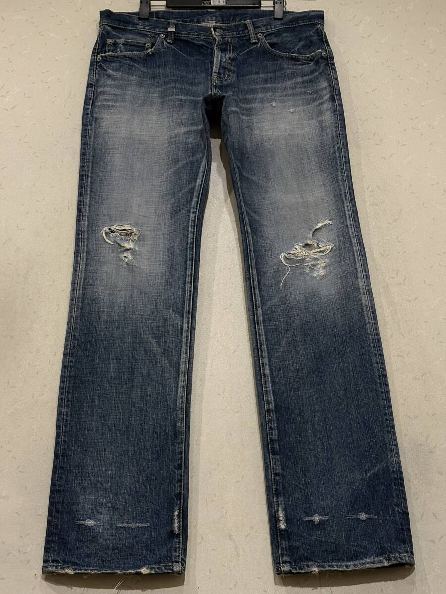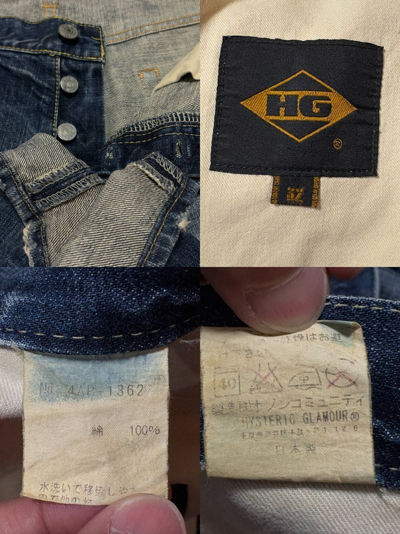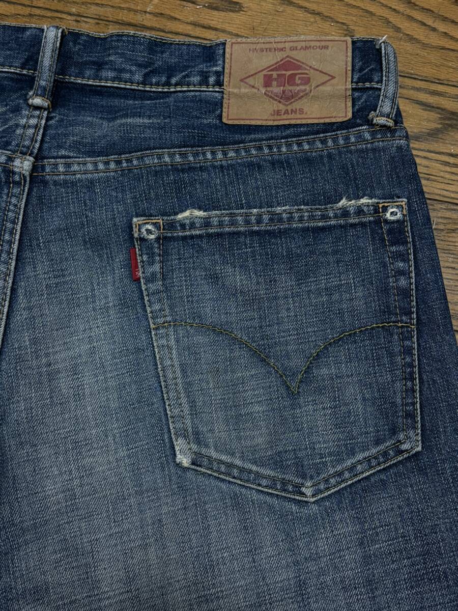 HYSTERIC GLAMOUR ヒステリック グラマー 4AP-1362 ダメージ加工 スタッズ セルビッチデニムパンツ 未裾直 インディゴ 日本製 32         BJBE.A