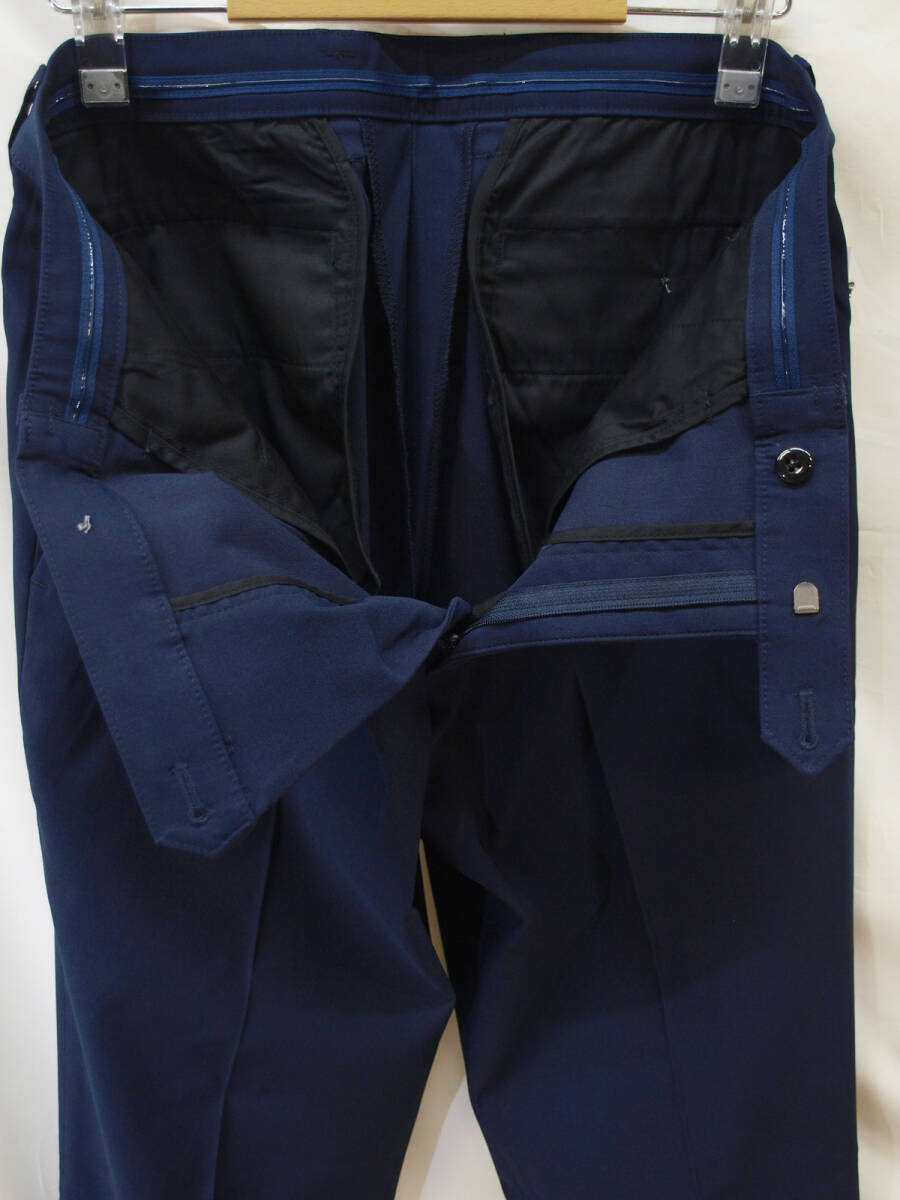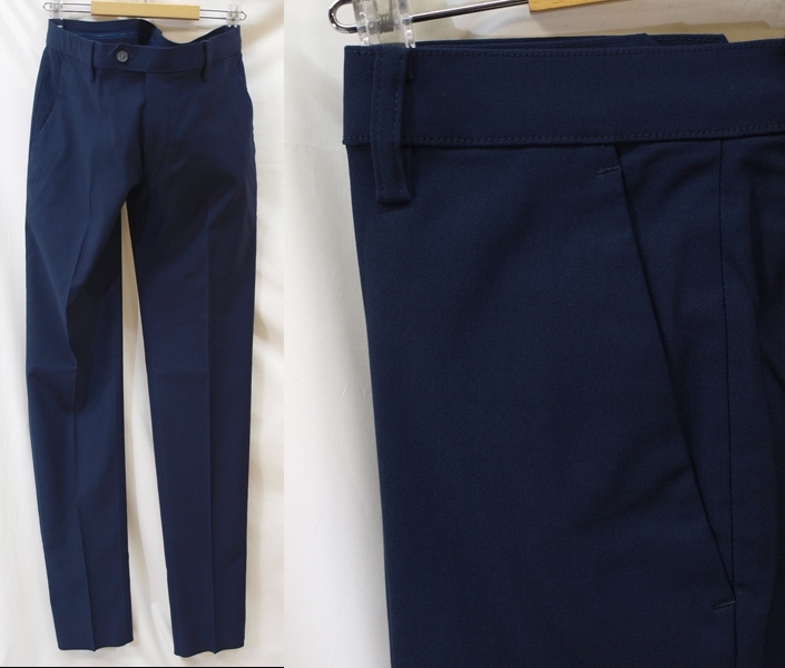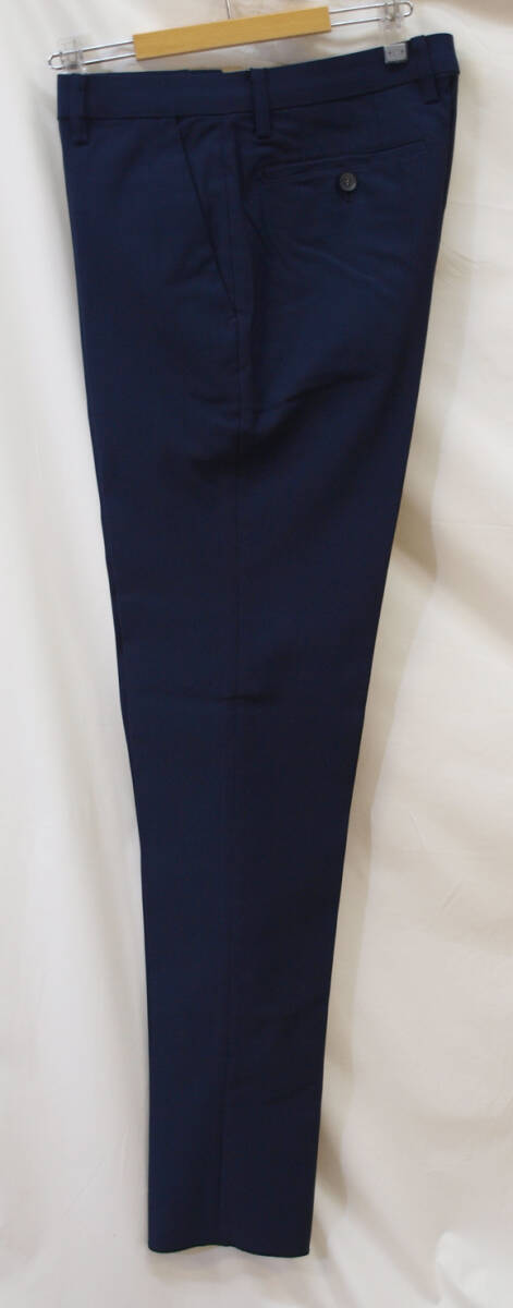 ■ ■ 【表記サイズ】 85cm 【実寸】 胴回り 最小85cm/全くひっぱらずに平置き採寸 ひっぱった状態で採寸すると91cm 渡り幅 30.5cm 股下から10cm下部分 28cm 股上 22.5cm(前股上 25.5cm) 股下 90cm (裾上げ未処理の状態/新品) 裾幅 17cm ■ ■ 素材/色など商品説明 ■ ■ 【素材】 ポリエステル70% レーヨン26% ポリウレタン4% 【色/柄】 明るめ紺色無地 (ストレッチ性あり) 秋冬商材ですがわりと薄手の生地を使用しておりご着用の地域にもよりますが真夏を除くほぼオールシーズンご着用頂けます。 【仕様等】 ノータック、後ろポケット片玉縁で左のみボタン付き、ヒザ裏なし、フロントはファスナーでホック&ボタンどめ/ウォッシャブル対応(水温30℃以下、ネット使用、弱水流)/シャツ滑りどめ付き きちんとベルトループも付いており見た目にはわかりませんがウエスト部分にストレッチの効いたベルト芯がはいっており5cm~7cm程度伸びます。 【デザイン】 もたつきのないすっきりとした細めシルエット、きれいめで大人のノータックストレッチスリムテーパードパンツです。 きちんとした縫製仕立てで、ウエスト部分もストレッチなので自然にのび立ったり座ったりした時や食後など圧迫感が少なく履き心地が良いです。 春秋冬メインのシーズン対応・新品・裾上げ未 ■ ■ お直しについて ■ ■ 別途料金にてお裾お直しを承っております。 お裾直しをご希望される場合、ご落札後、取引メッセージにてご連絡下さい。 料金は、シングル仕上げ1100円/ダブル仕上げ1300円/ウエスト詰め出し 1500円 (3~4cm程度までの直し)でございます。 オークション終了後、取引メッセージにてご指示下さい。 かんたん決済お支払い時、送料にプラスしてお支払頂くかたちになります。 お裾直しをうけたまわった場合、平日3~5日程(土日祝、夏季、冬季休業日除く)、出来上がりまでに日にちがかかってしまい、返品やサイズ交換などは出来か ねますことをご了承下さい。 ■ ■ お支払い&配送方法&送料等 ■ ■ お支払いはかんたん決済のご利用となります。 宅配便ご利用の場合、佐川急便または一部地域はクロネコヤマト宅配便(袋/60~80サイズ)になり、 送料は、本州、四国/800円 九州/1200円 北海道/1300円 となります。 ご面倒をお掛け致しますが宅配便のご利用で沖縄県への配送の場合、ゆうパックのご利用(岐阜県から60~80サイズ)となりますのでお問い合わせ下さい。 到着日時、お時間指定帯(午前中/12時~14時/14時~16時/16時~18時/18時~20時/19時~21時)のご指定可能。 複数ご落札頂いた際、同時梱包/まとめて配送で送料は1点分にてお送り致します。 ヤフーかんたん決済お支払いお手続きが完了次第、定休日(土日祝)除く毎17時締めにて即日発送致します。 毎平日17時頃までの発送業務となります。 ご入金確認後、即日発送を心がけておりますが、土曜日、日曜日、祝日、 夏季(8月13日~8月16日)、冬季(12月30日~1月4日)とお休みを頂いておりますので、 その間御入金を頂いた場合、翌平日の発送となりますことをご了承下さい。 ■ ■ コメント ■ ■ 新品ですが在庫に限りが御座います為、大変申し訳御座いませんが、ノークレーム・ノーリターンにてどうぞ宜しくお願い致します。 K00---52-- |