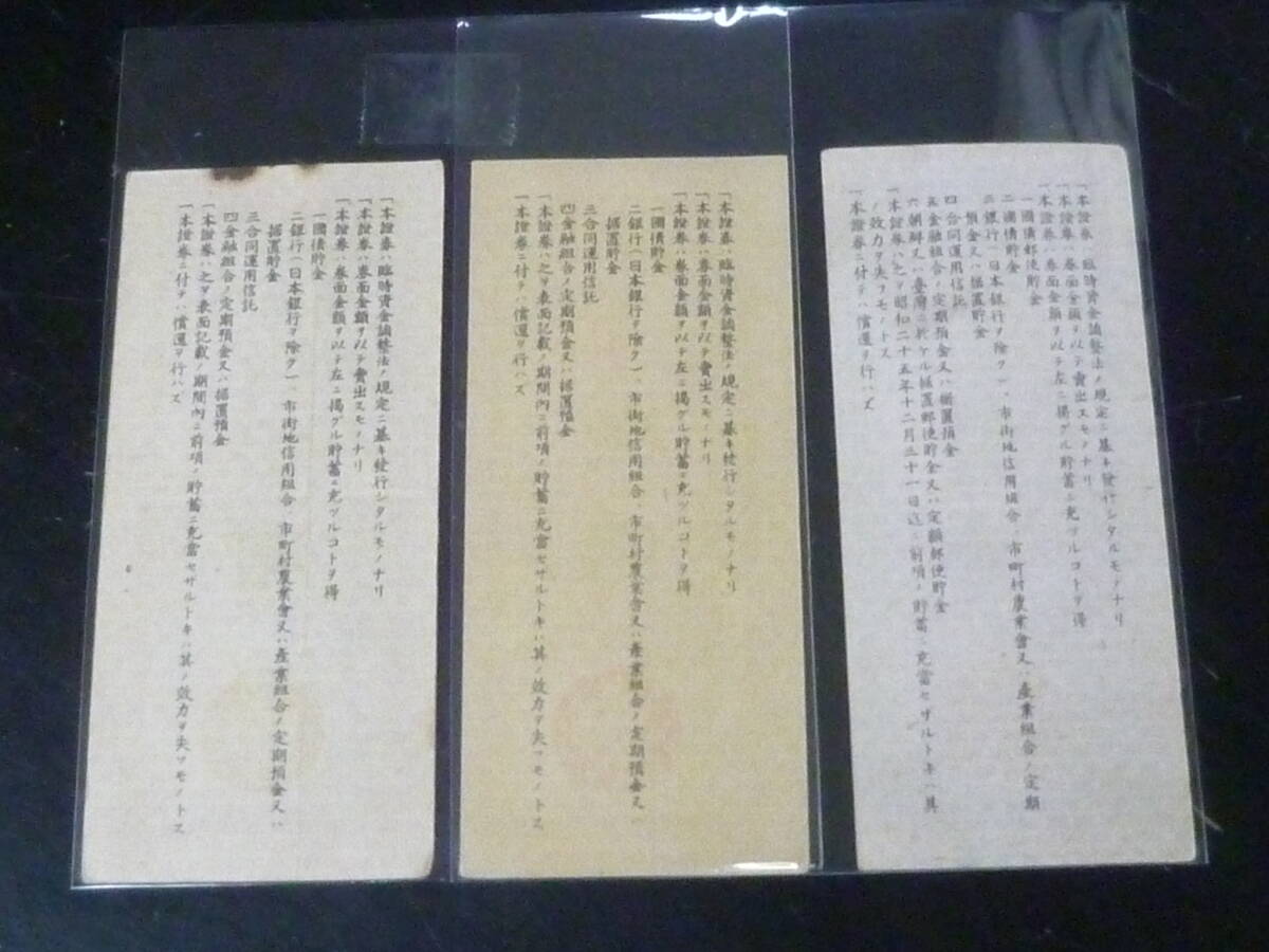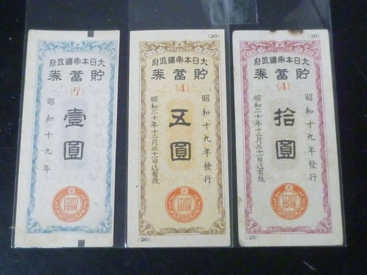 25F A №26 貯蓄券 大日本帝国政府 昭和20年前後 壹圓・五圓・拾圓 計3枚