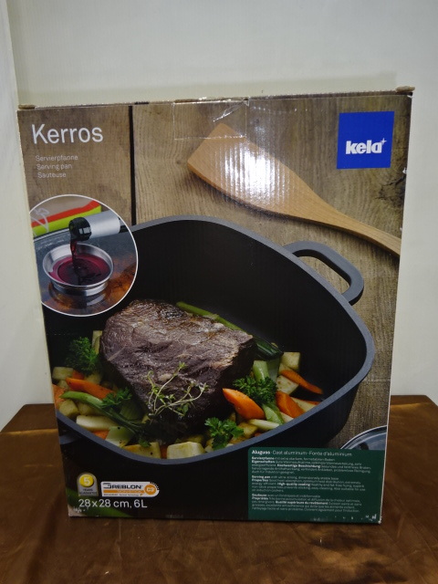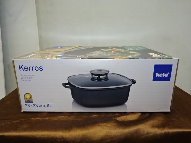 【新品未使用品】Kela ケラ 耐熱ガラス蓋付きスクエアパン 28cm 6L Kerros ブラック 11553 [28 /IH対応]