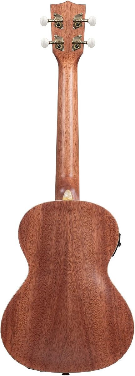ビンテージスタイルのギターからインスピレーションを得たこの美しいウクレレは、マホガニー材を使用した本物のアーチ型のトップにマザーオブパールのバインディングが施されており、メタリックペイントカラーとグロスフィニッシュで仕上げられています。