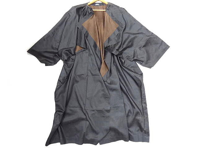 イッセイミヤケ ペルマネント ビッグ サイズ コーティング 加工 変形 羽織り デザイン 着物 ガウン コート ローブ ブラウン 茶 ISSEY 90S