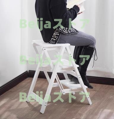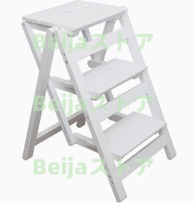 踏み台 図書館/台所/オフィスのための折る 三段 ステップのはしごの木製のはしごの屋内脚立 家庭用 白