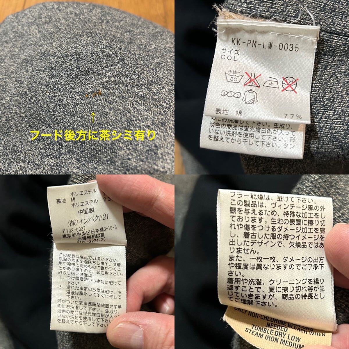 後付けフード、パッチポケット、各所ダメージ加工のデザイン性に加え、