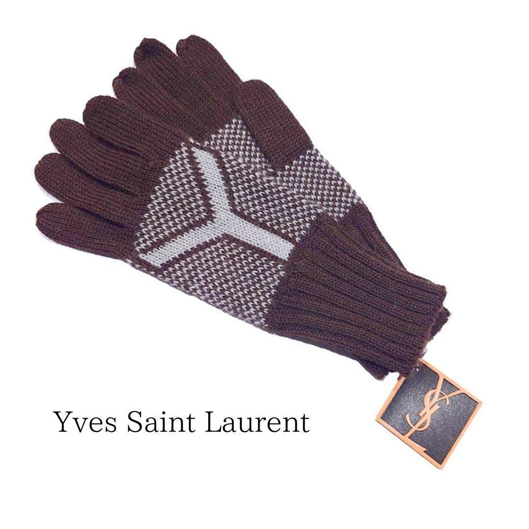 「未使用 Yves Saint Laurent イヴ・サンローラン YSL 手袋 ニット グローブ Yデザイン ブラウン」です。