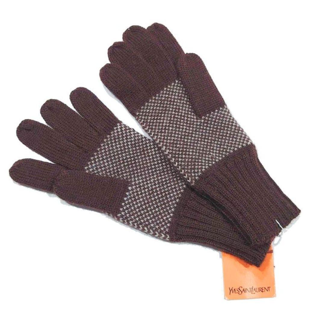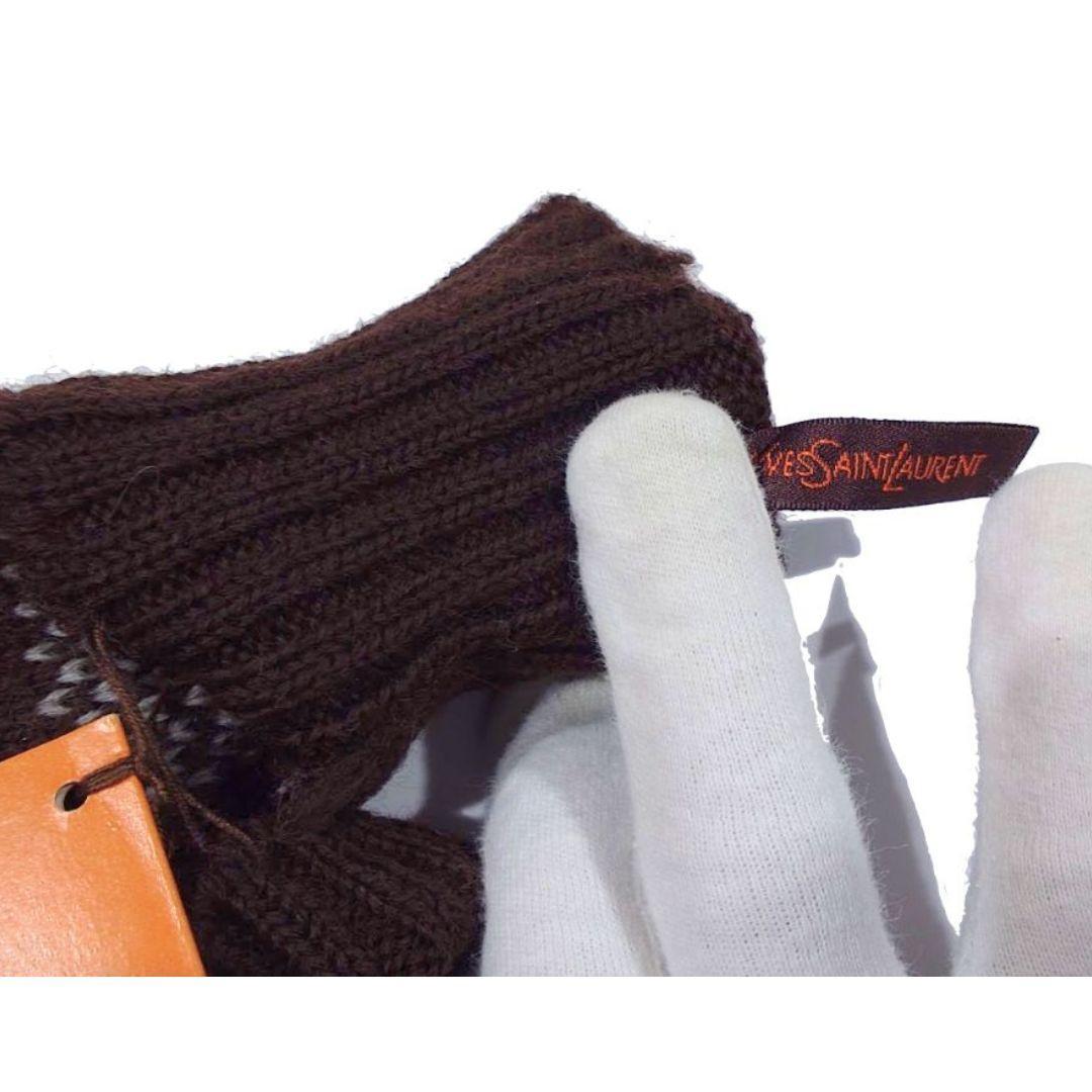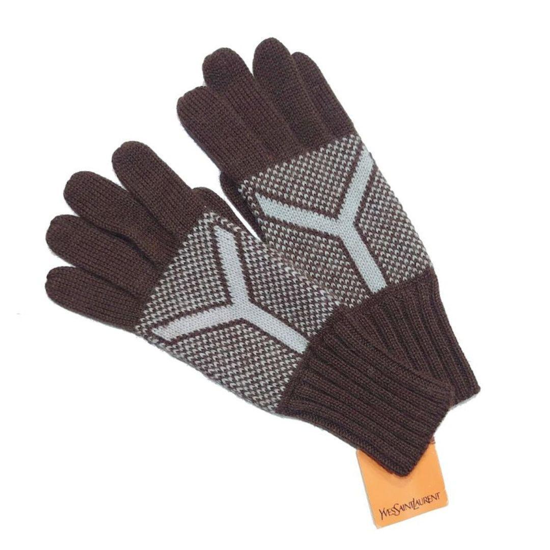 【希少】鑑定済 未使用品 Yves Saint Laurent イヴ・サンローラン YSL 手袋 ニット グローブ Yデザイン ブラウン 送料無料