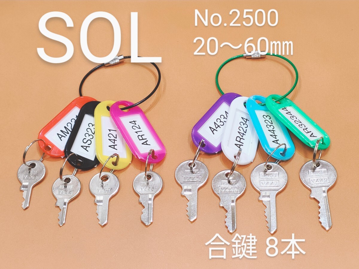 SOL、南京錠、合鍵8本【No.2500、20-60㎜】ソル、カギ、同一キー、南京錠カギ、ネコポス便匿名無料配送、sol、同一キーカギ、SOL南京錠カギ