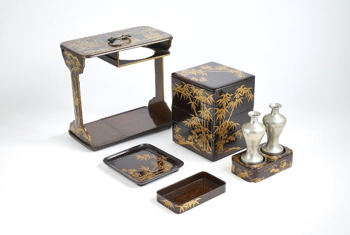 | ・時代漆美術 賢人蒔絵重 花見重 木箱 /錫屋半兵衛 蒔絵美術 野弁当箱 大名 |