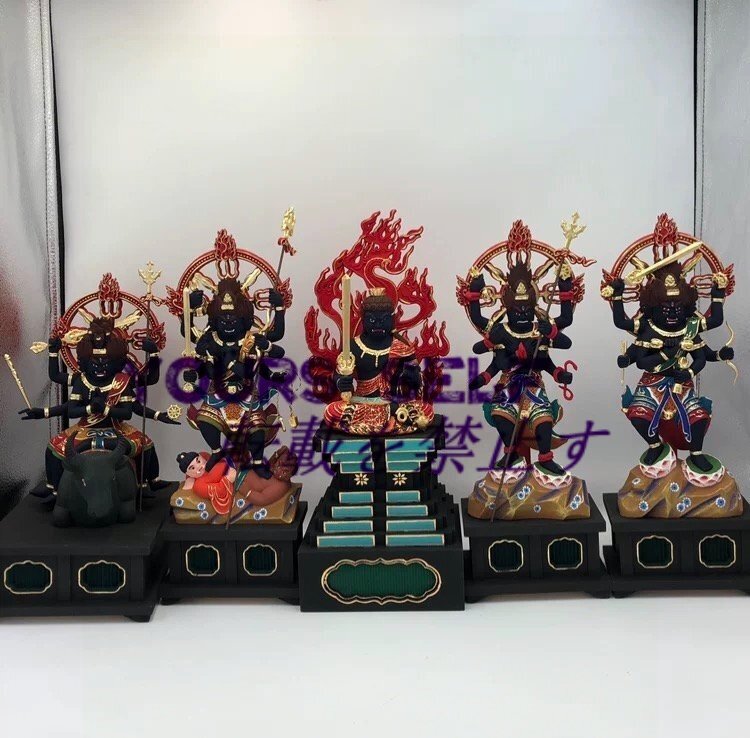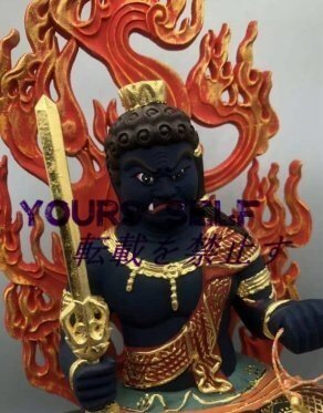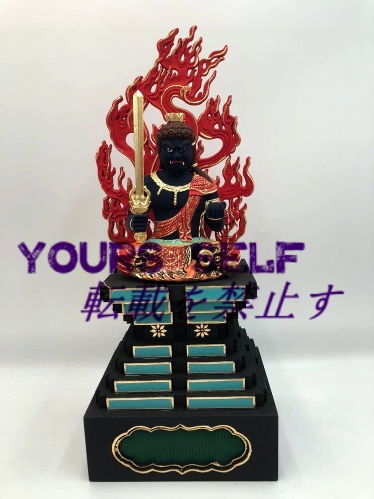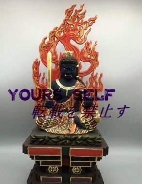 珍品 高31cm 不動明王 仏像 座像 桧材製 極彩色 仏教工芸品 人気の仏像 仏師手仕上げ品