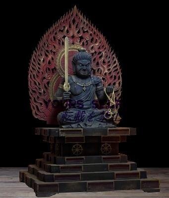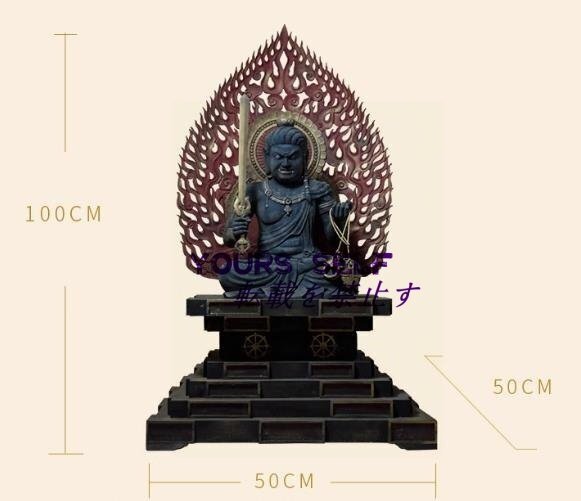 特大サイズ 不動明王 極彩色 木彫り 仏壇仏像 木製 置物 香樟木製 酉年 守り本尊 祈る 厄除け 四角台座 火炎光背