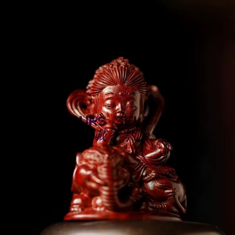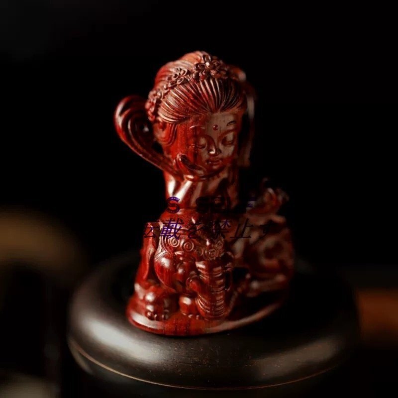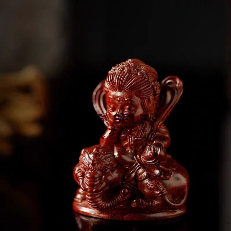 仏像 小型【文殊菩薩・普賢菩薩】座像 小葉紫檀製 2点セット 厄除け 十二支守り本尊 守護仏 木彫りの仏像 (高さ10cm×巾7.5cm×奥行5cm)