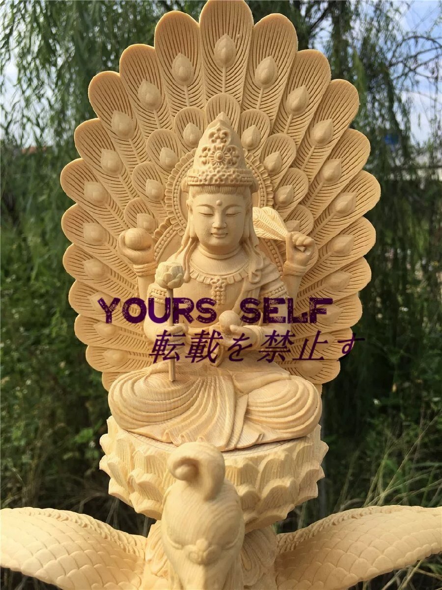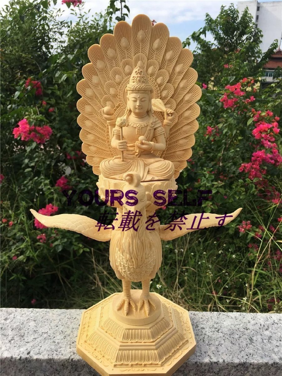 極上の木彫 孔雀明王座像 仏教美術 精密彫刻 仏像 手彫り 極上品 高さ38cm