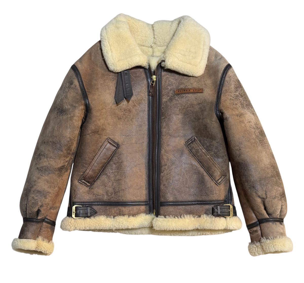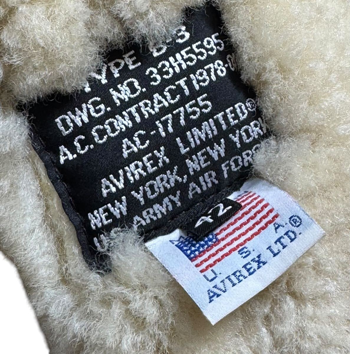 美品 近年モデル USA製 AVIREX B‐3 アビレックス 胸ワッペン リアルムートン フライトジャケット 42