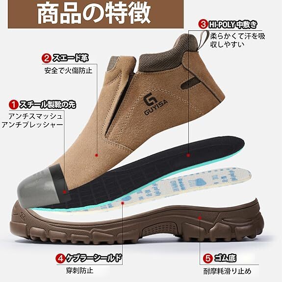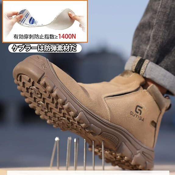 「耐貫通性ソール」防弾ケブラーミッドソールを搭載し、1100Nの貫通力に耐える。釘などから足を守ります。
