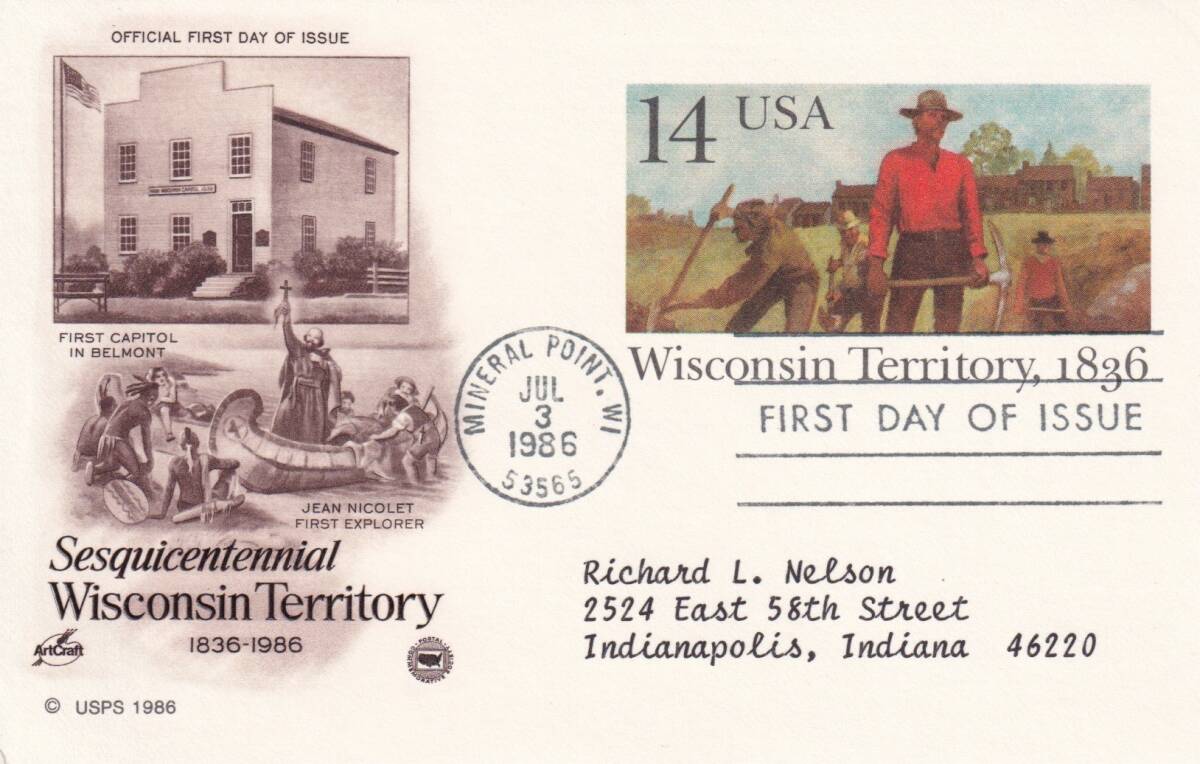 【初日はがき】ウイスコンシン領150年(1986年)(アメリカ)実逓 t4421