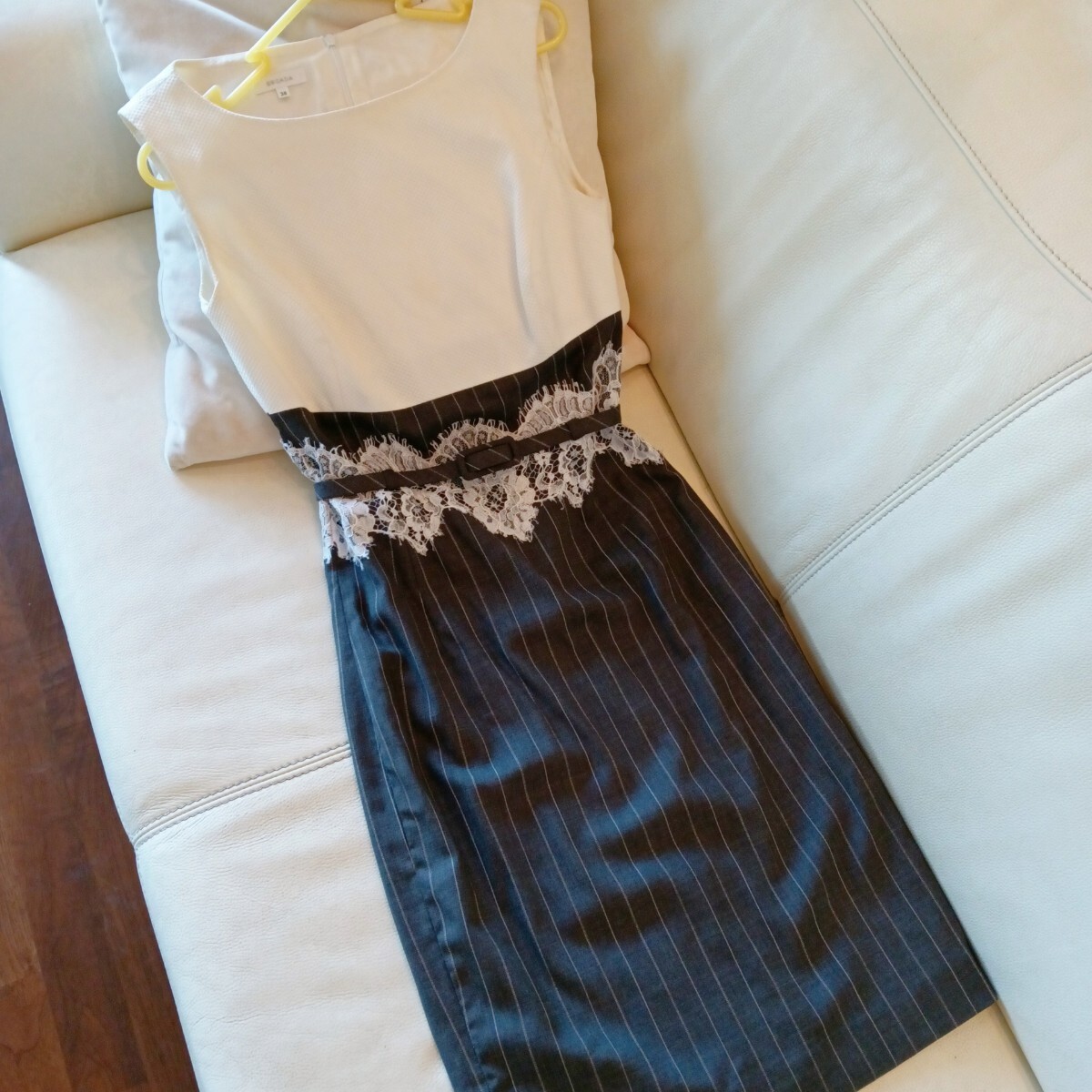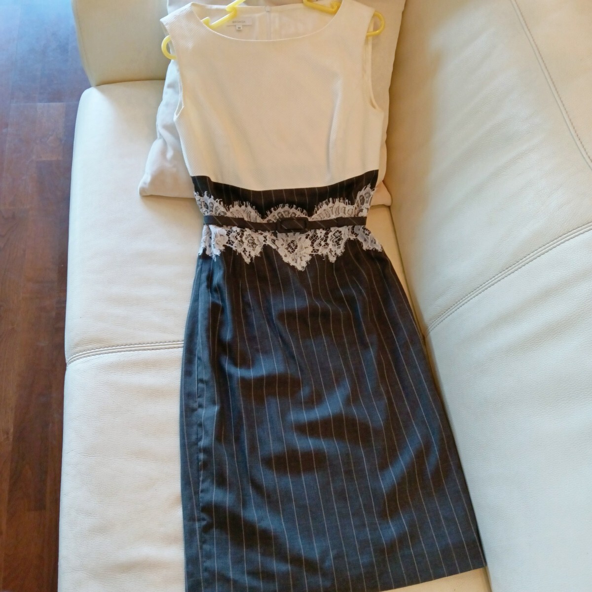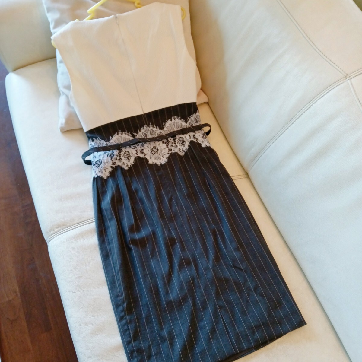 エスカーダ ESCADA ストライプ ドッキング レース ワンピース 30万 イタリア カクテル 膝丈  パーティー
