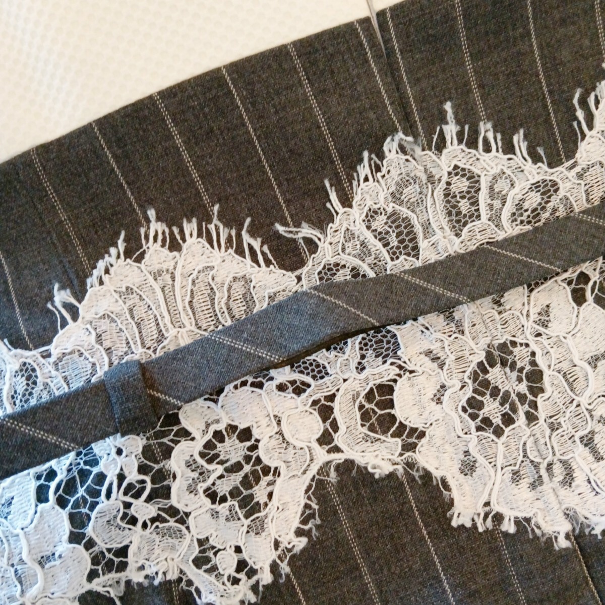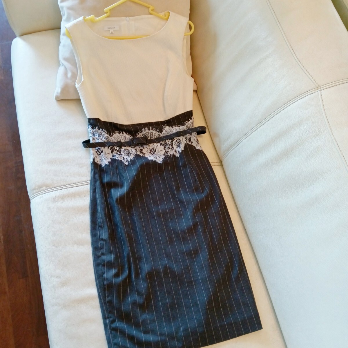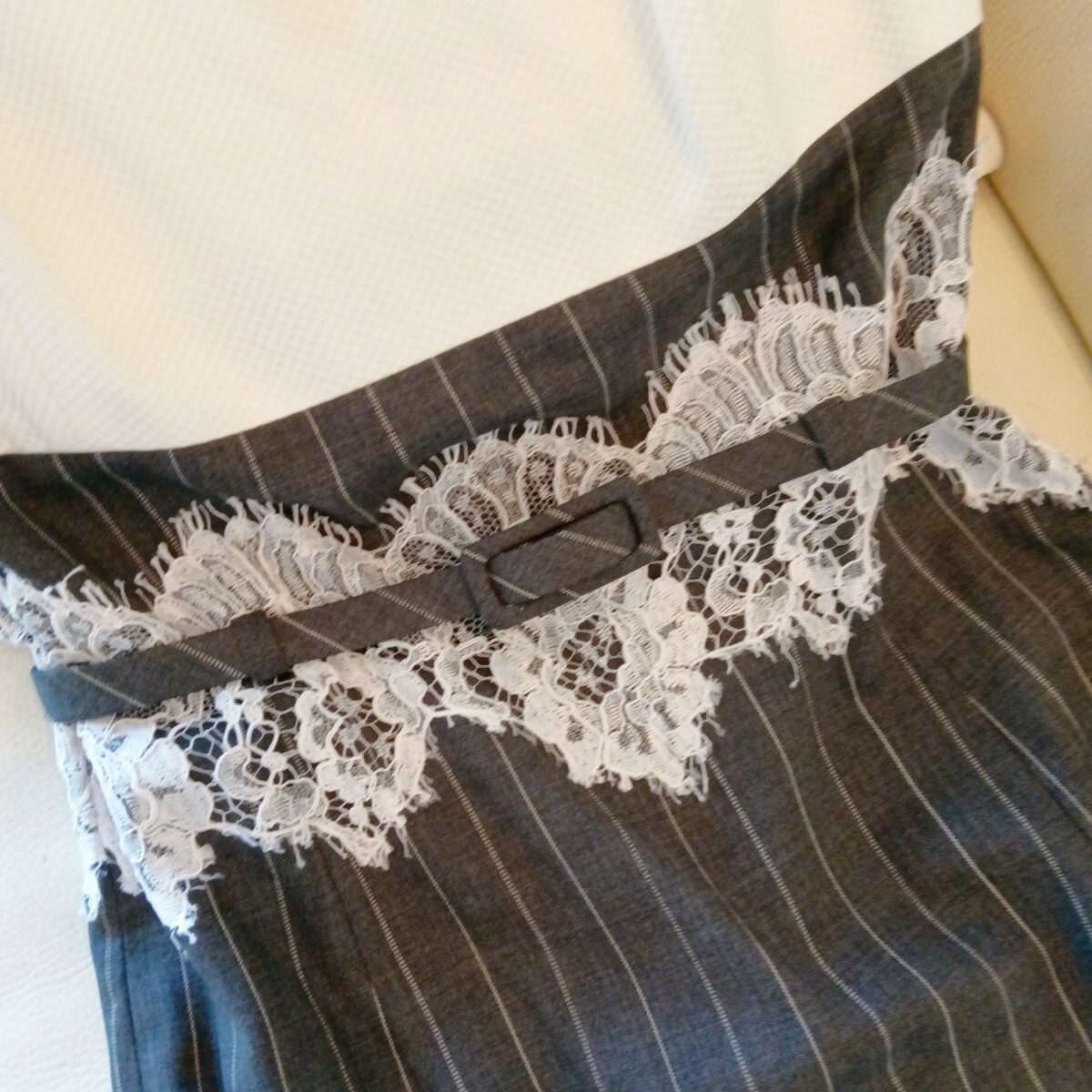エスカーダ ESCADA ストライプ ドッキング レース ワンピース 30万 イタリア カクテル 膝丈  パーティー