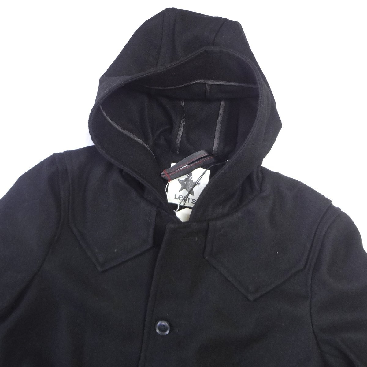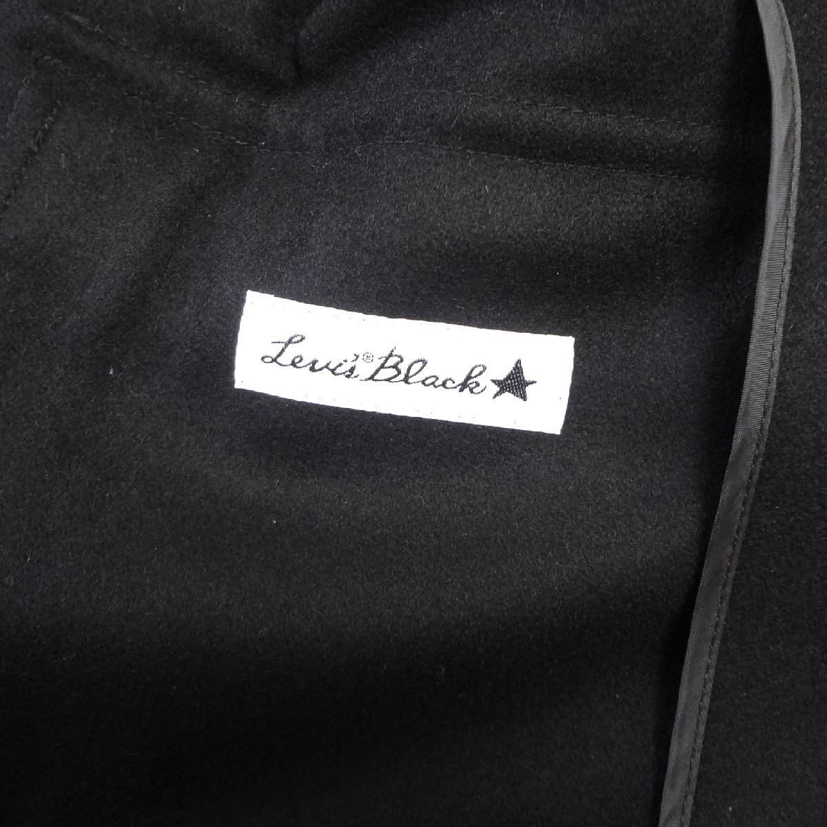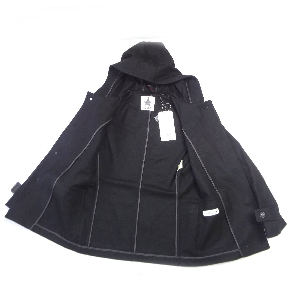 リーバイスのフード付きコート、フーデッドテーラードジャケット、ブラックダッフルコート、素材は表地がウール80%/ナイロン20%、パイピングがポリエステル100%、廃番モデル2007年発売のデッドストック