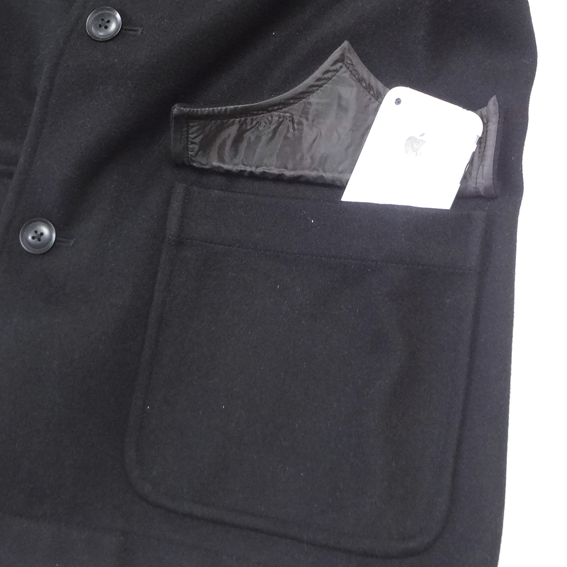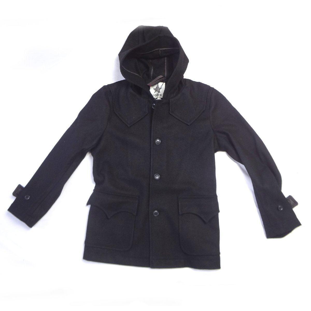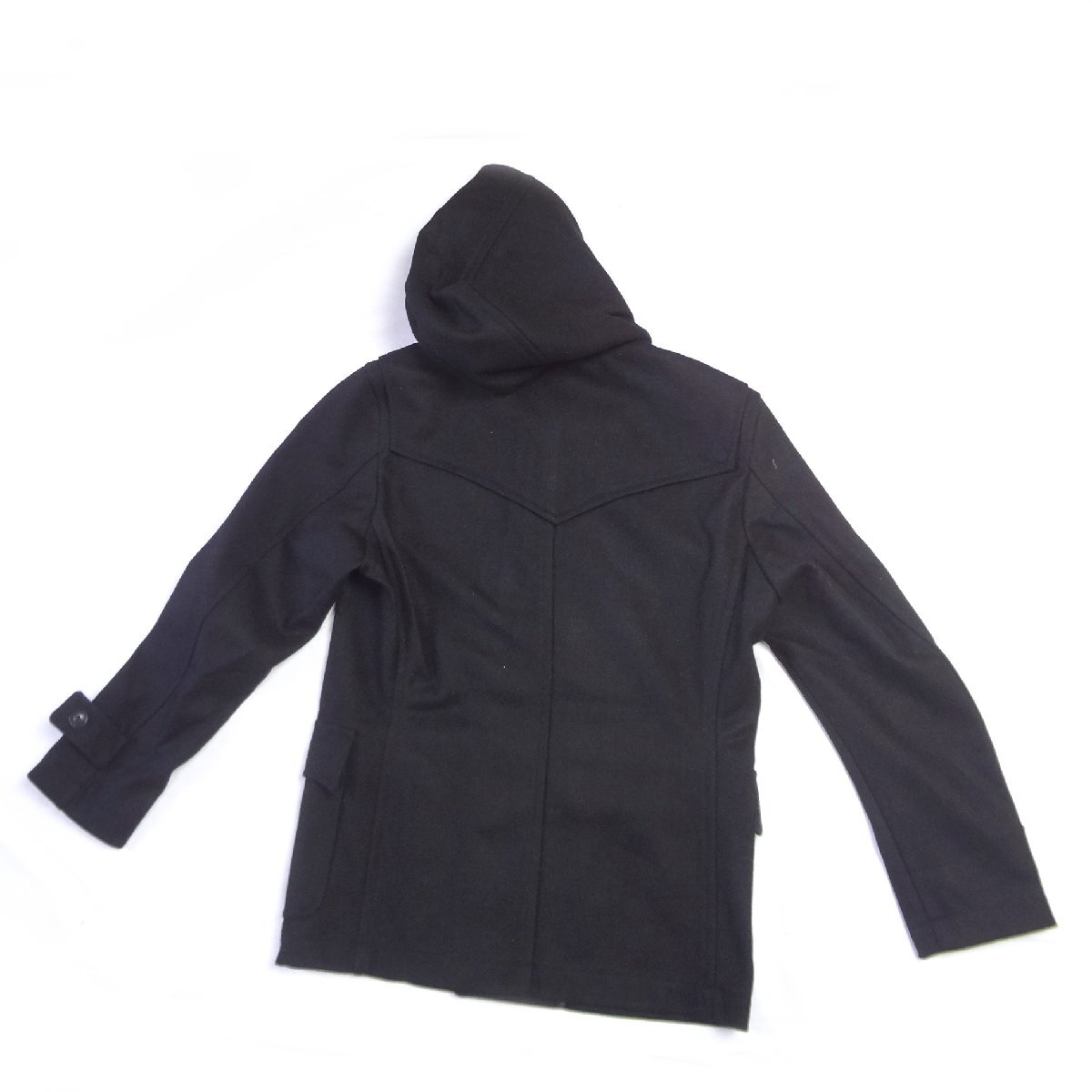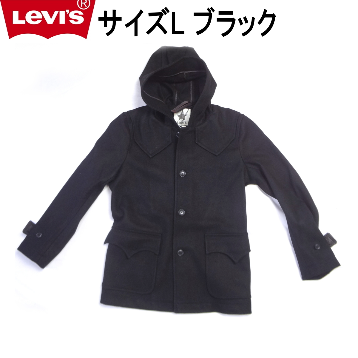 リーバイスのフード付きコート、フーデッドテーラードジャケット、ブラックダッフルコート、素材は表地がウール80%/ナイロン20%、パイピングがポリエステル100%、廃番モデル2007年発売のデッドストック