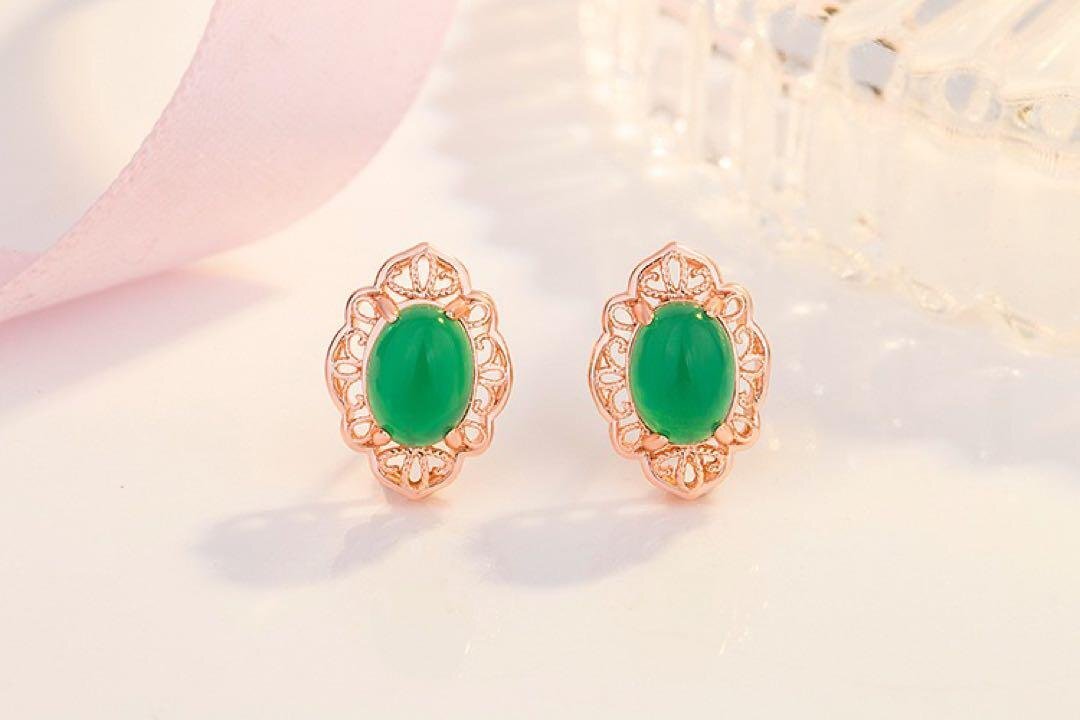 新品 オバールピアス グリーンピアス レディース ピアス シルバー925 ピアス アレルギー対応 ins風