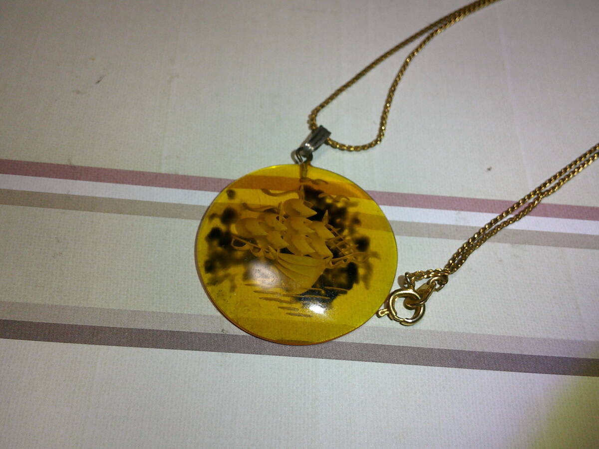 鼈甲/べっ甲 帆船モチーフ ネックレス 未使用品