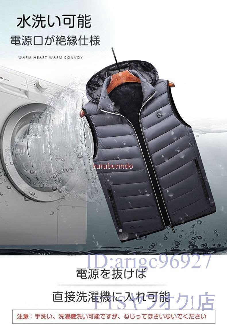X007☆電熱ベスト急速発熱 ヒートジャケット 3段階超 軽量 取り外しフード付き 加熱ベスト 洗濯可水洗い防寒ベスト 男女兼用3XL