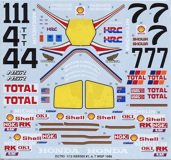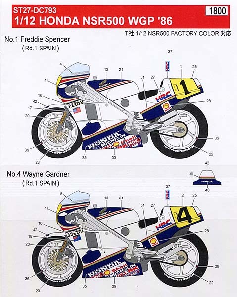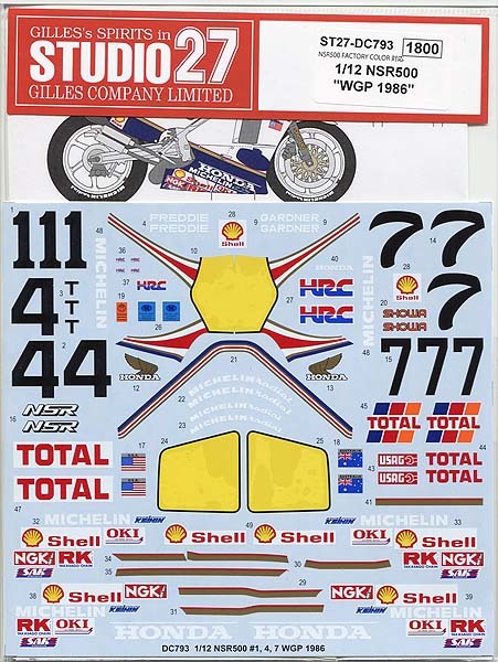 スタジオ27(STUDIO27) DC793 1/12 NSR500 HONDA WGP `86 デカール