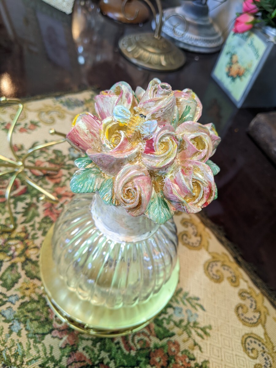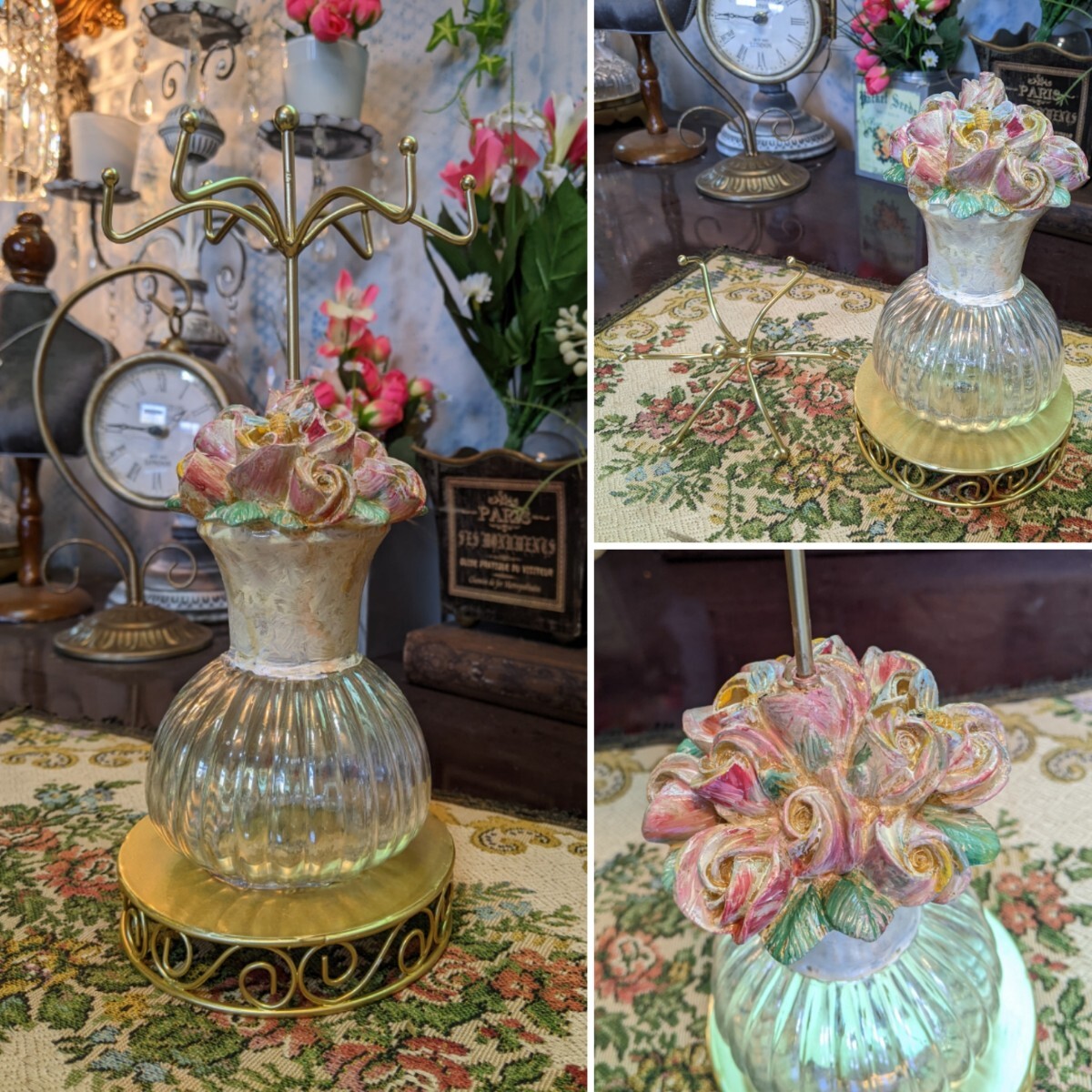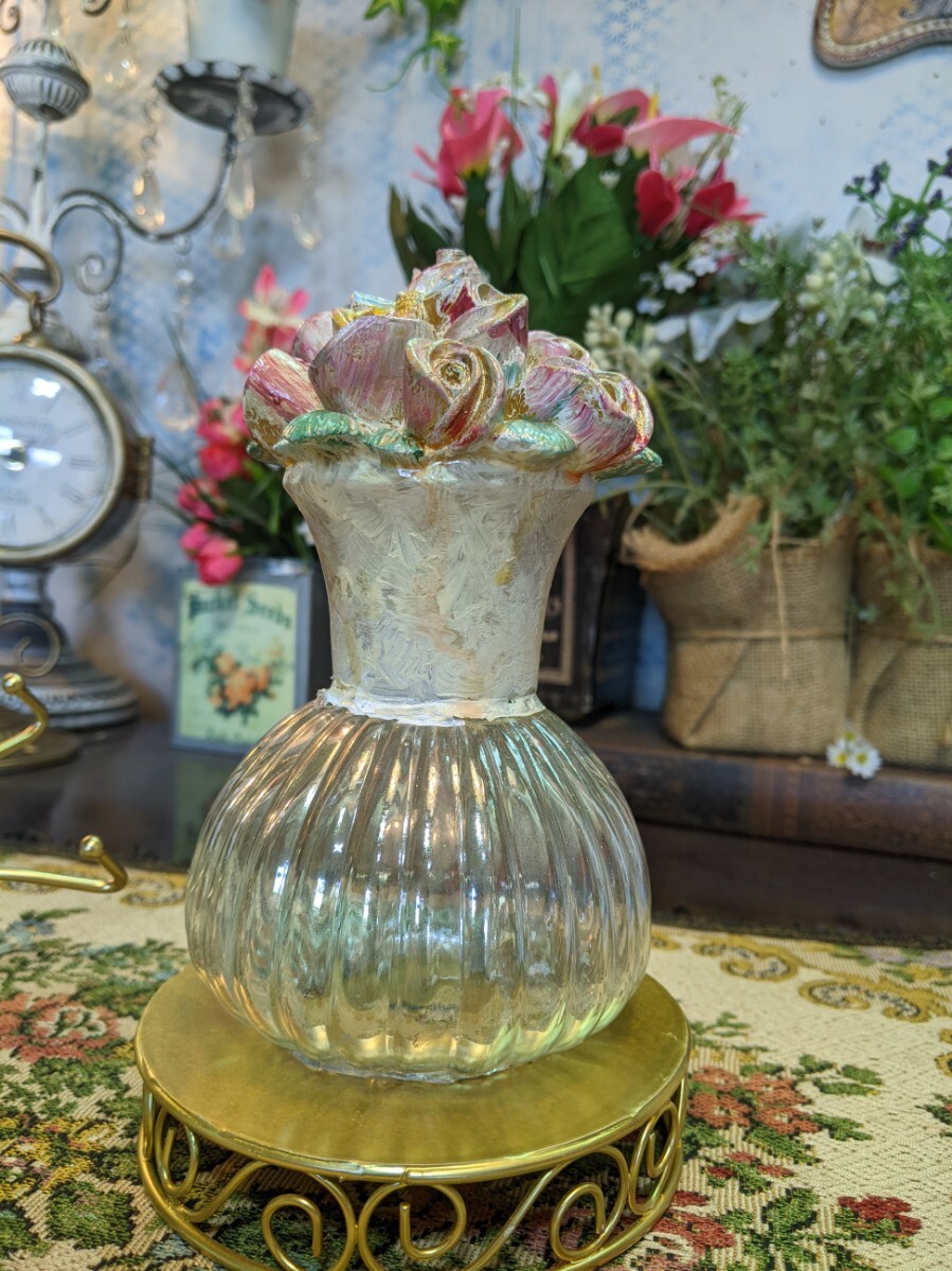 ※試作品の放出販売に伴い、市販品とは異なるデザインにし、鉢植え薔薇はアンティークペイントにて色味を着けし、高さを持たせてデザインした物となります。