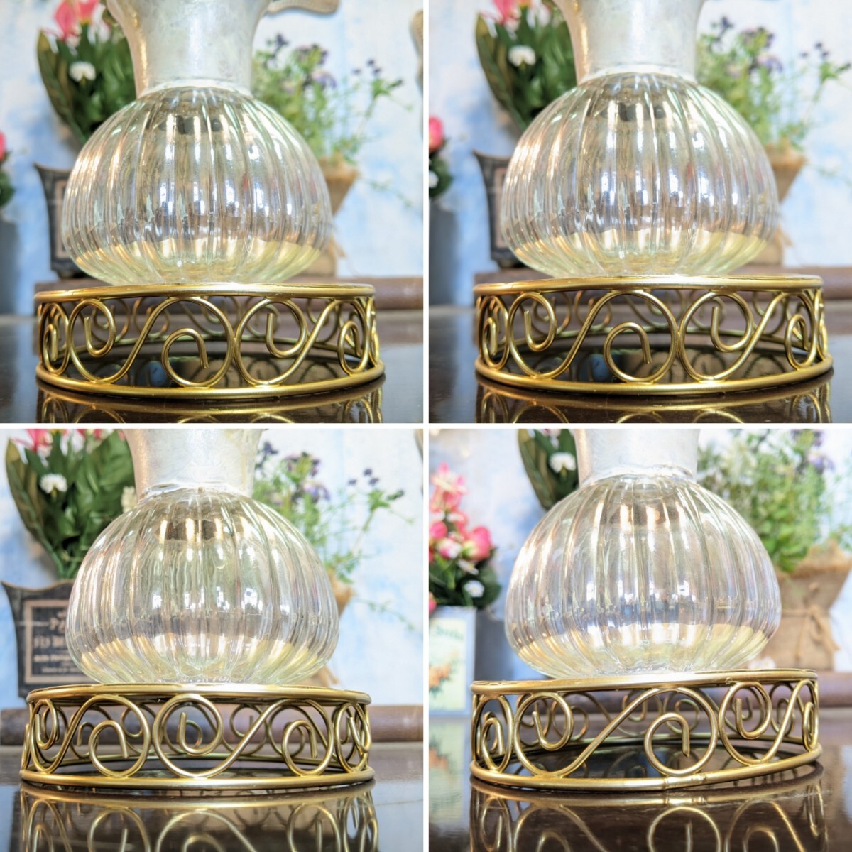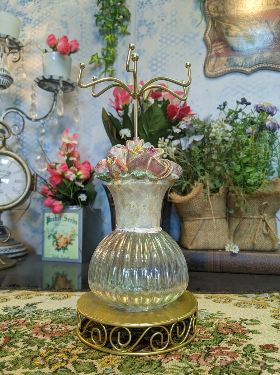 ■スチール製台座、ガラスドーム中間台座、レジン製ローズ鉢本体、フックスタンドスタンドとなる 4パーツから構成して降ります。