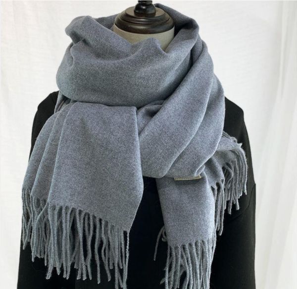 秋冬新作 ~ 上品 大判 カシミヤ ストール マフラー 男女兼用 シンプル 無地 暖かい 厚手 マフラー 13色選ぶ ~ グレー