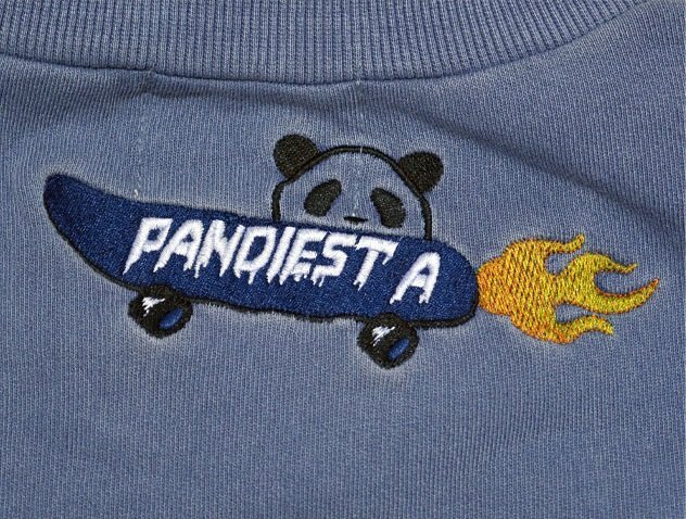 和柄ブランド【錦】の姉妹ブランドとして誕生した、お茶目なパンダをモチーフとした【PANDIESTA JAPAN】より「スケートパンダピグメントスウェット(564561)」のご紹介です。 今や、錦の定番モチーフとなった「錦PANDA」!! ピグメント加工を行うことでヴィンテージライクな風合いを演出した、スウェットトレーナーです。 着はじめから長年愛用しているような色合いで、新しくも懐かしさを感じる一着に仕上げています。 今回のモチーフはスケボー。 ストリート調にデザインされており、ピグメント加工との相性も抜群です。 フロントにはストレートキャップを被ったパンディエスタのアイコンを刺繍。 スケートボードには刺繍を使用し、背景のロゴはひび割れプリントで表現しました。 背中にはスケボーとパンダフェイスを、袖口にはフットスタンプを、それぞれワンポイントで刺繍しました。 ボディーには裏毛タイプのスウェット生地を採用。 襟元、袖口、裾にはリブを配し、野暮ったさを軽減しました。 | |||||||||||||||||||||||||