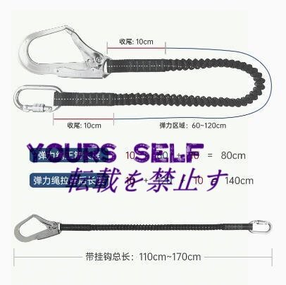 新品 超人気★衝撃吸収 フルハーネス型用 2丁掛けタイプ ランヤード ダブルランヤード 伸縮 蛇腹式ロープ フック 安全帯用 60-120cm