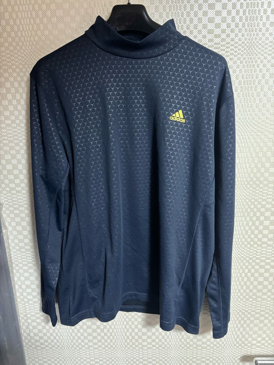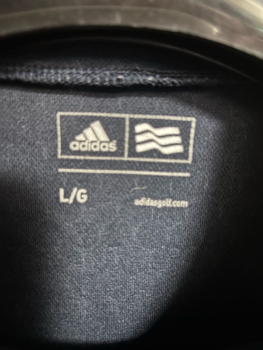 アディダスのアンダーシャツです。半袖ポロシャツのインナーに着てました。サイズ L G表記で平置き脇下身幅54、着丈68肩幅46袖丈60センチ位です。