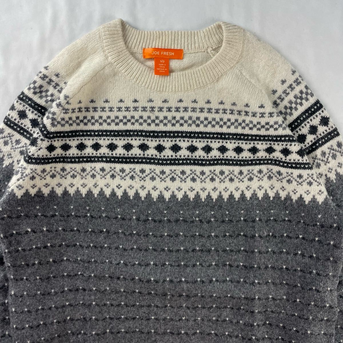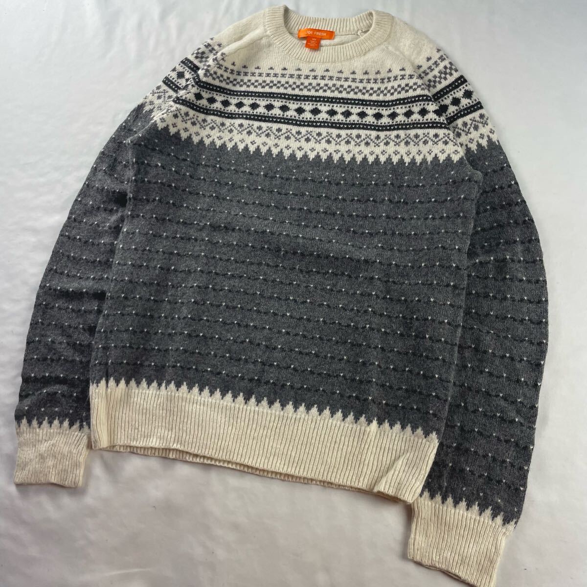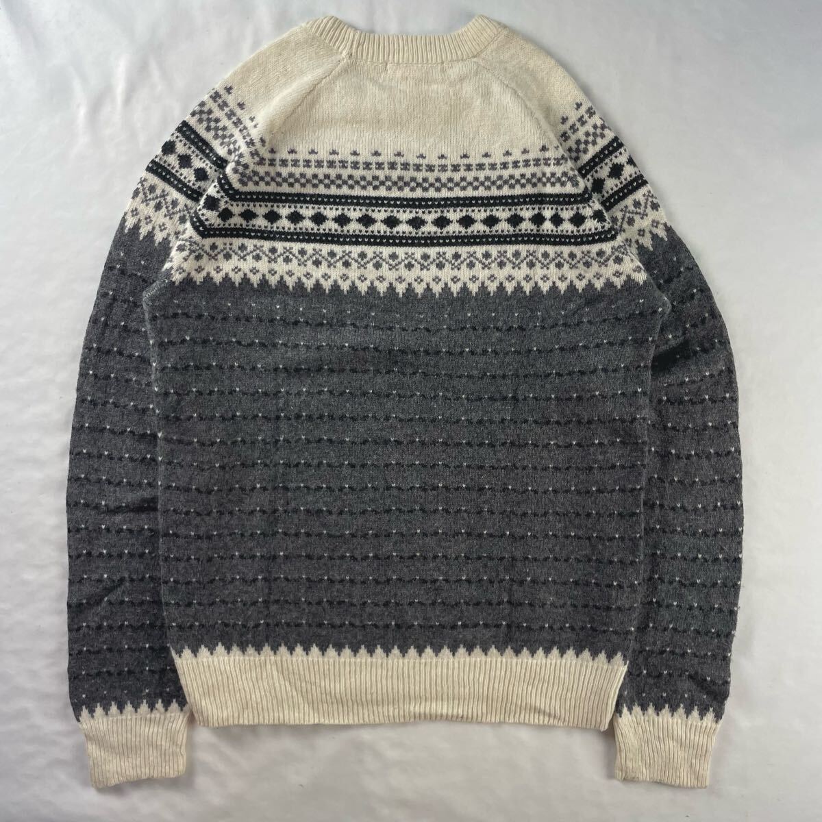 US Vintage JOE FRESH ナイロン35%, ウール25%, コットン20%, アクリル15%, レーヨン5% ラグラン フェアアイル バーズアイ 幾何学模様 アート エスニック 民族 デザインニット