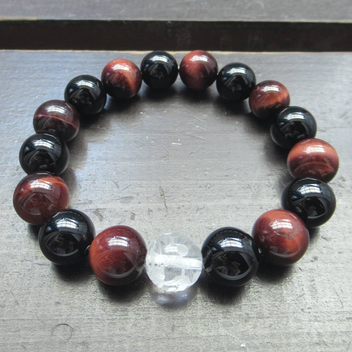 龍彫水晶xレッドタイガーアイxオニキスブレスレット 天然石 パワーストーン