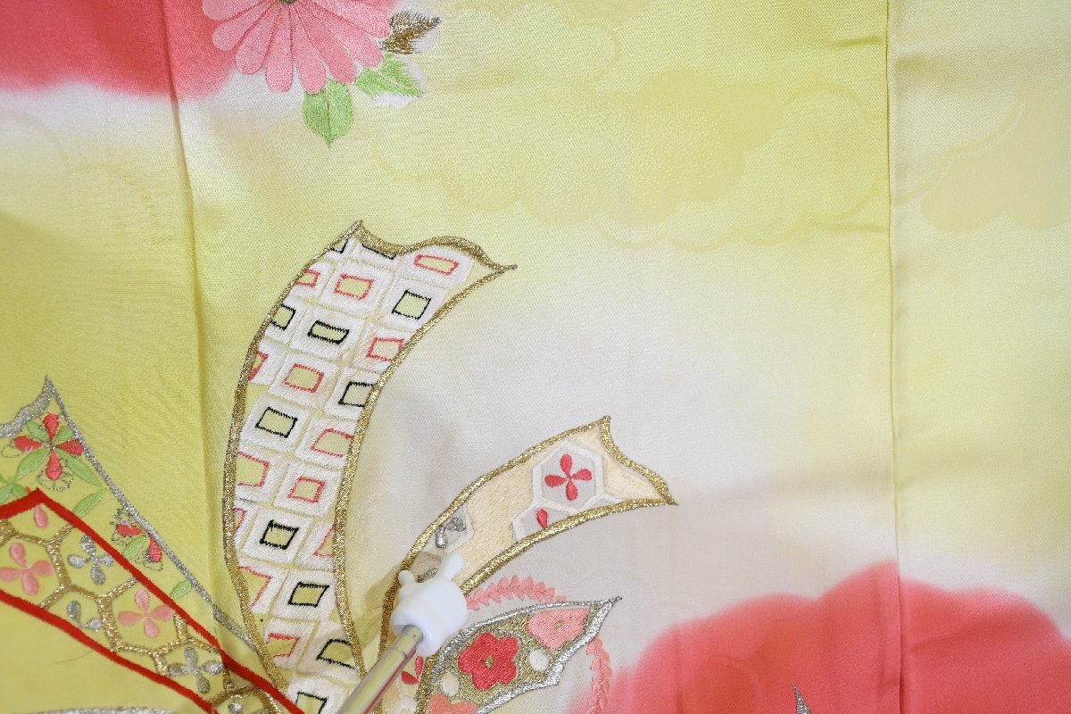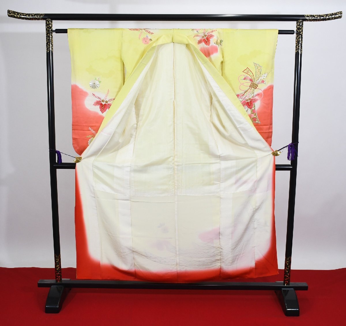 サイズ | ▼身丈 (背中から) 154cm ▼裄丈 60cm ▼袖丈 74cm ▼後巾 26cm ▼前巾 22cm |