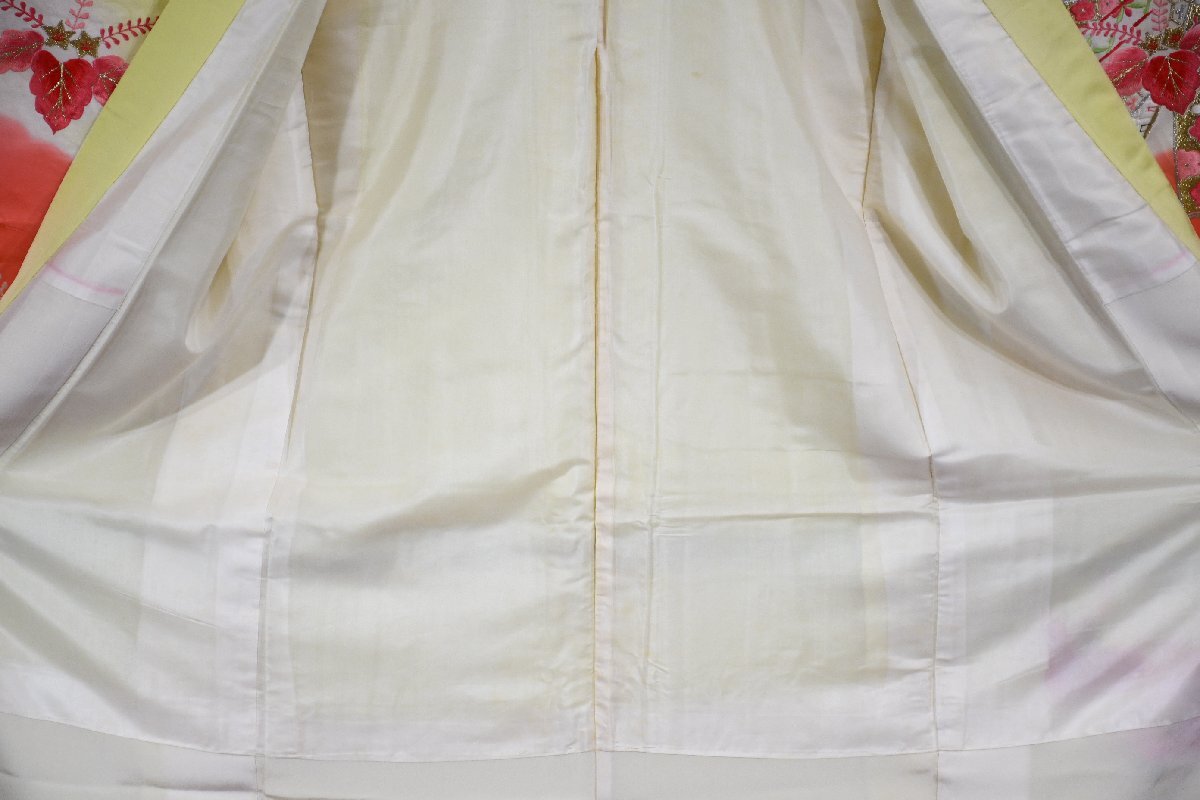 コメント | 衽、前身頃、後ろ、袖、衿、胸付近等にシミ汚れがあります。新品ではありませんので、中古品という扱いです。少したたみジワがある場合がございます。ご了承の上、ご入札をよろしくお願いいたします。 |