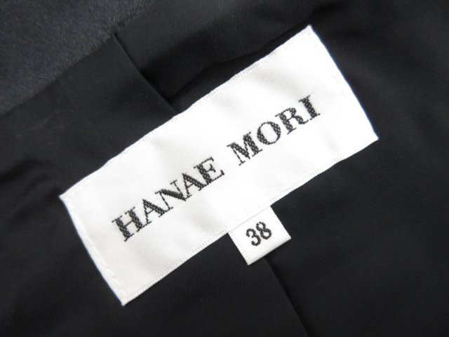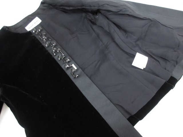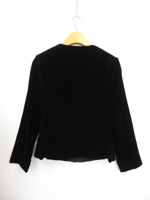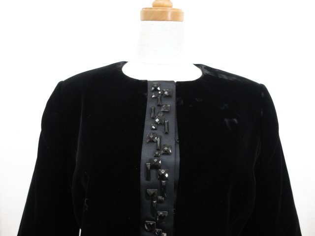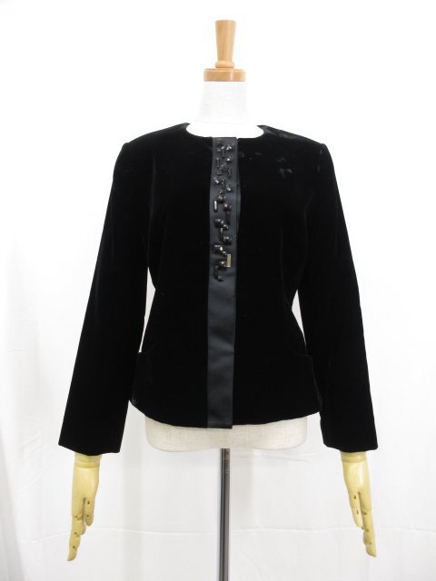 HH美品【ハナエモリ HANAE MORI】25-41680-28 ビジュー装飾 ノーカラー ベロアジャケット (レディース) size38 ブラック ◯17LB1955◯