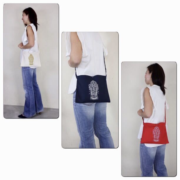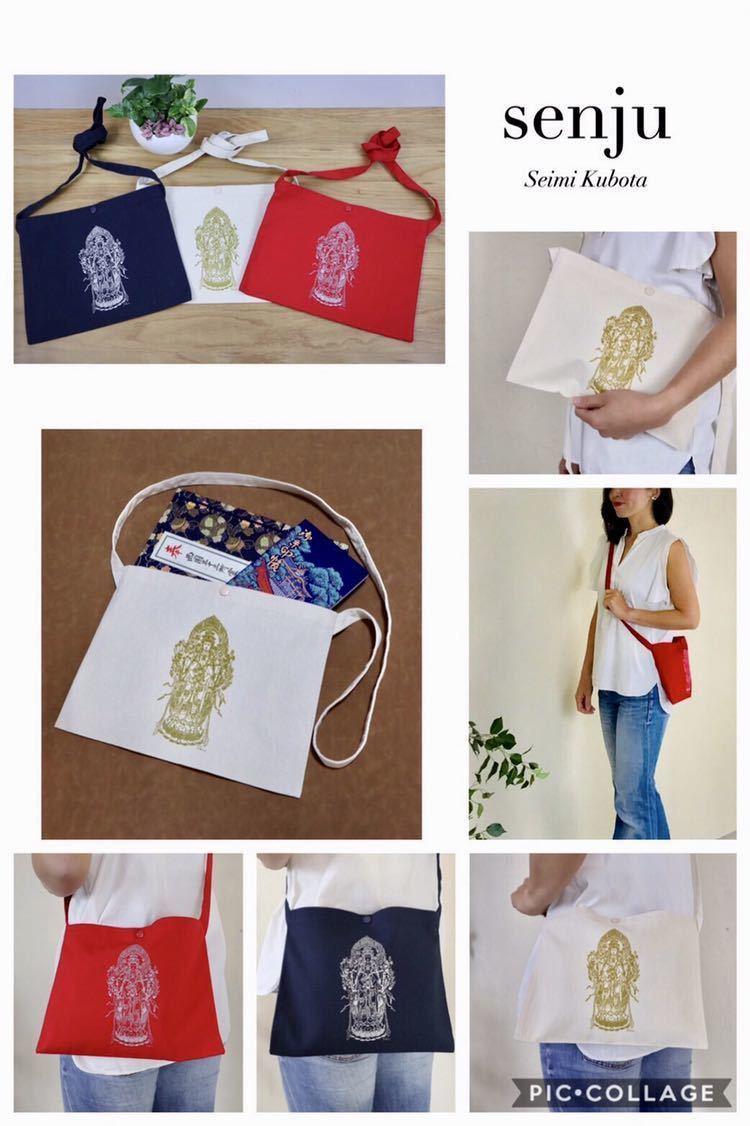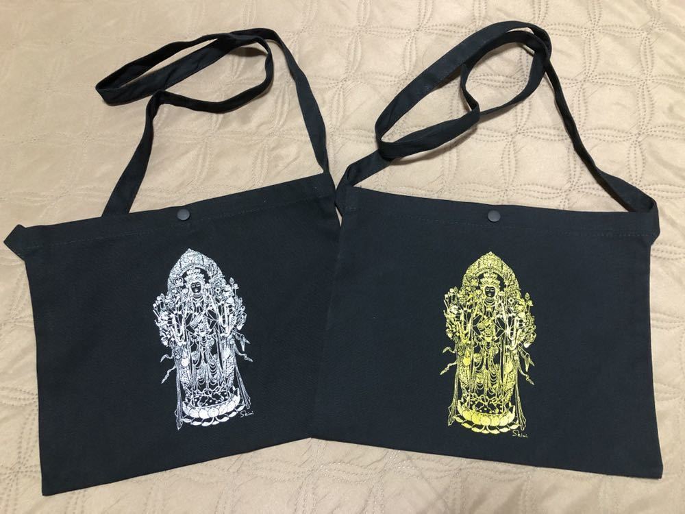 仏画家・久保田聖美先生の描かれた千手観音がプリントされたサコッシュです。