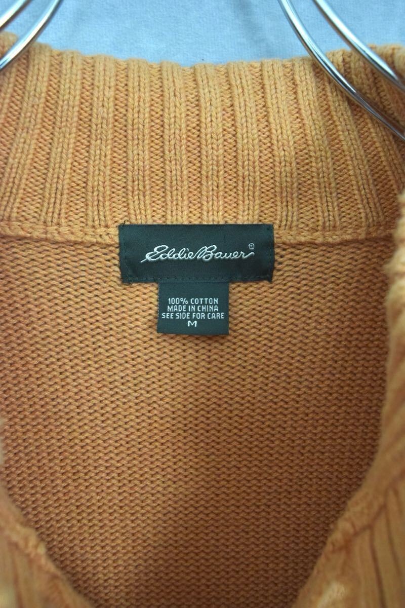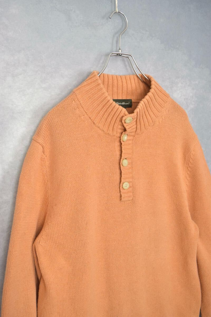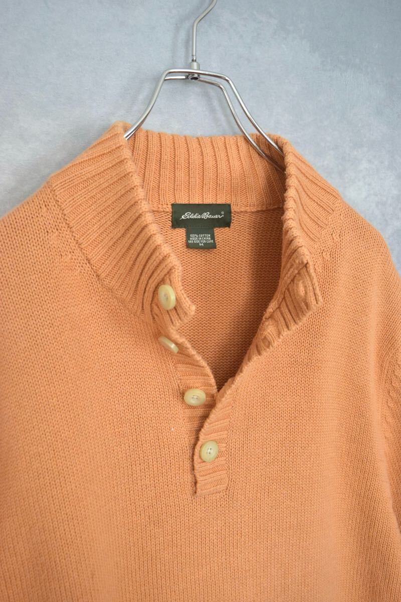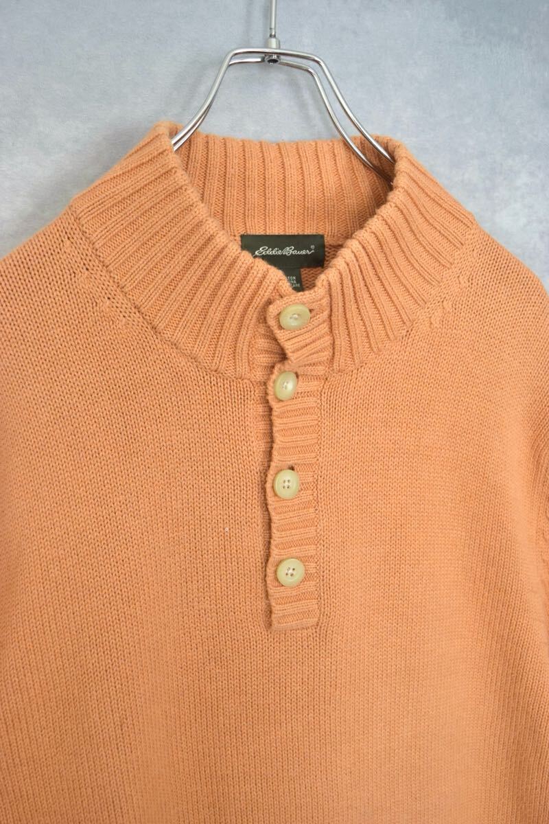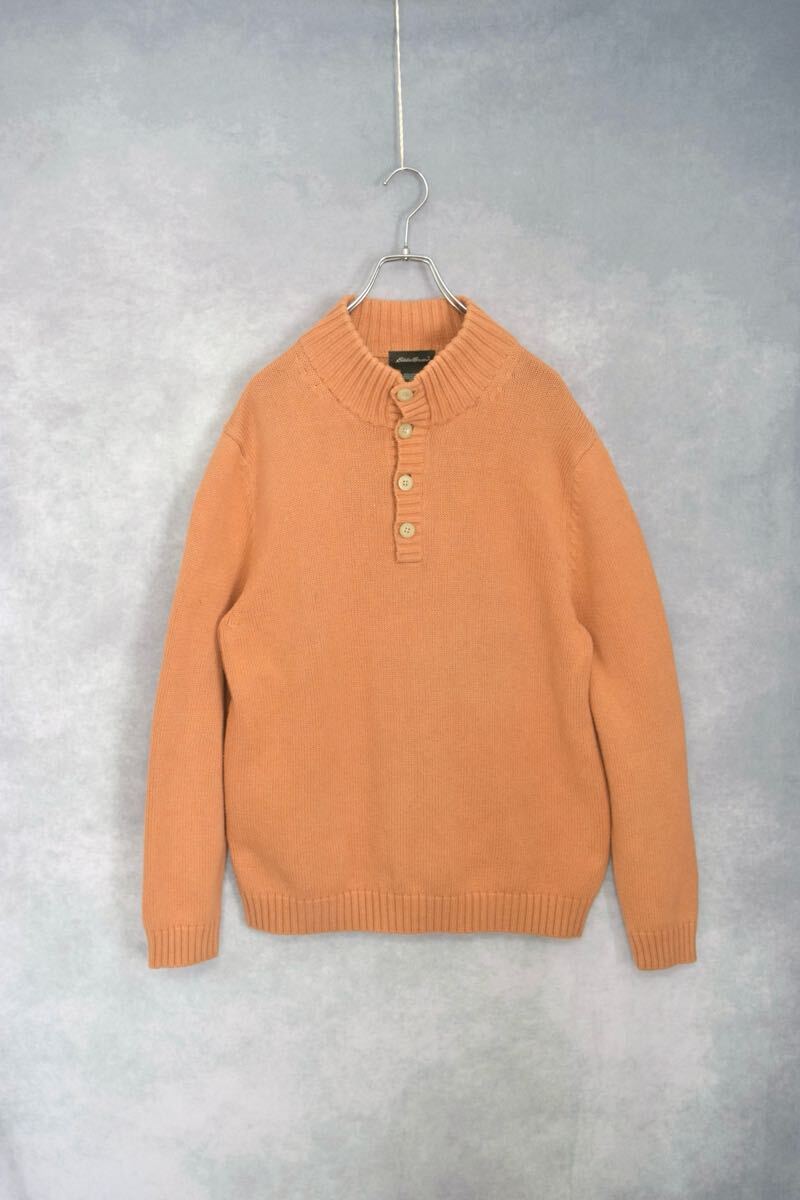 【 00s エディーバウアー 】" eddie bauer " モックネック コットン ニット / size m / Y2K 掛けボタン ハイネック ライトオレンジ
