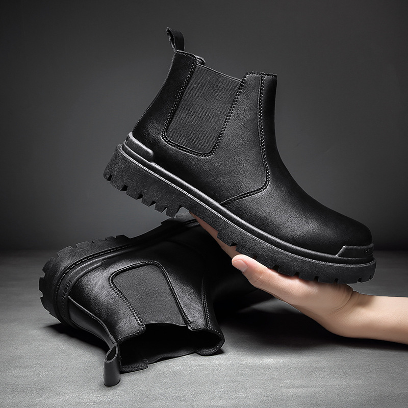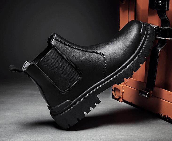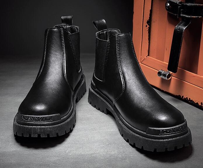人気品サイドゴアブーツ メンズ チェルシー ブーツ ハイカット フェイクレザー靴 おしゃれ 人気 黒26cm サイズ選択可