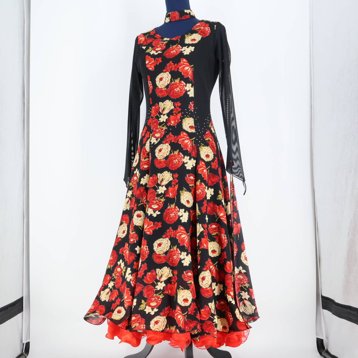 | 商品説明 | 【商品名】社交ダンス衣装 ワンピース ドレス 【サイズ】表記無し 平置き実測:総丈約123cm(裾~肩部まで)、身幅約44cm、ウエスト約34cm ※実測の為、多少の誤差はご容赦願います ※9号のトルソーに少し余裕のあるサイズ感です 【仕様】 ・背面ファスナー仕様 ・若干の伸縮性有り ・胸パッド無し ・肩パッド無し ------------------------------------ 【ポイント】 ▽prima boutique プリマブティック ▽黒×赤×ラメの華やかなデザイン ▽発表会やパーティ用として ------------------------------------ 【撮影時使用トルソー:女性用トルソー9号(一般的に使用されるサイズです)】 トルソーサイズ詳細 肩幅約37cm、バスト約88cm、ウエスト約66cm、ヒップ約89cm |