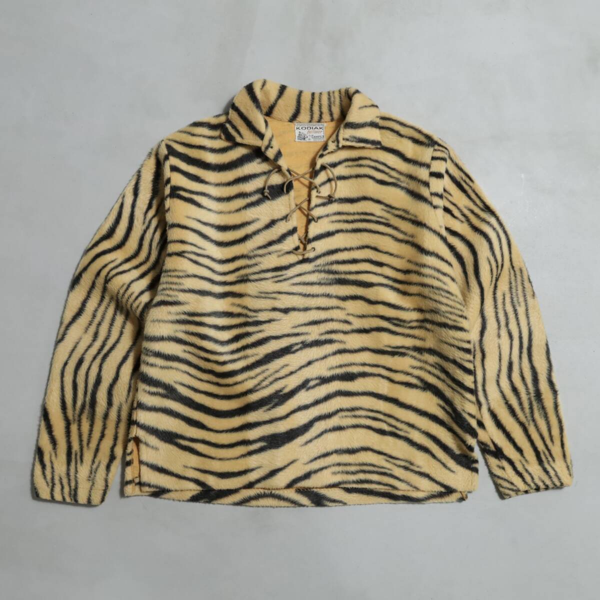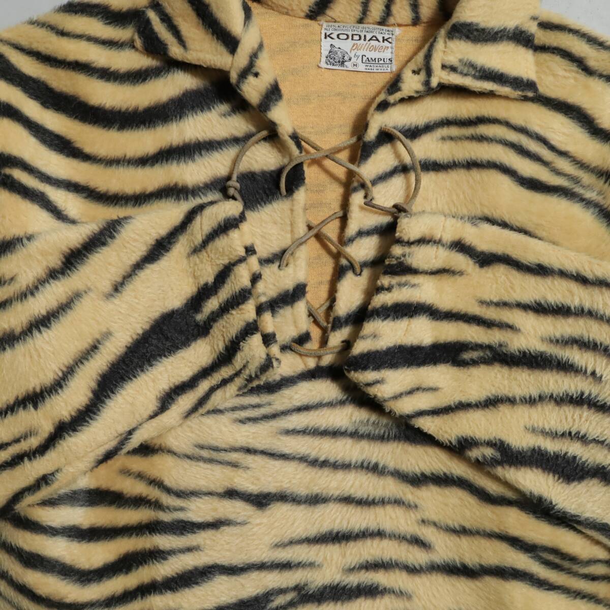 超希少 CAMPUS KODIAK コディアック 50s フェイクファー タイガー 虎 レースアップ トップス 美品 激レア ビンテージ Medium アニマル 良好