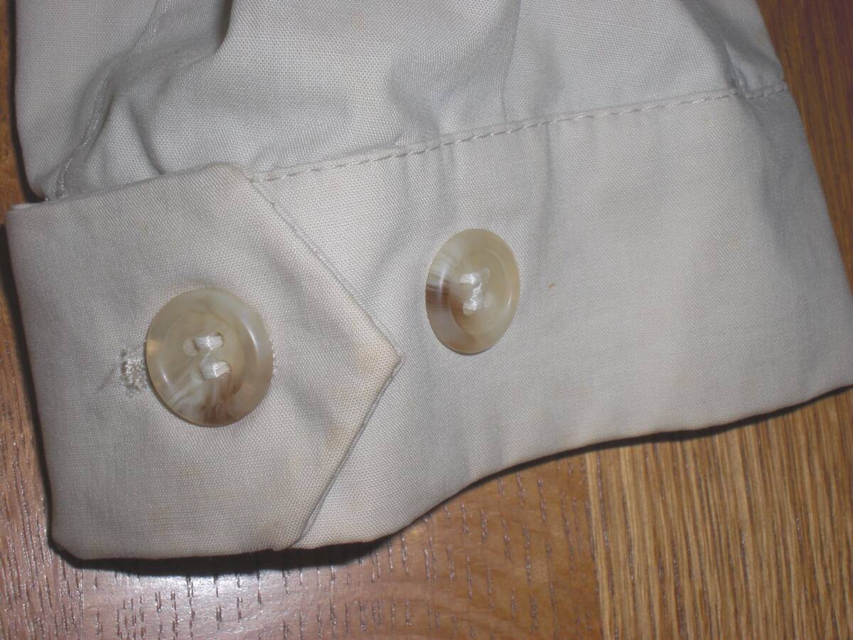 左右ボタン付きフラップポケット、袖先アジャスタブルボタン、