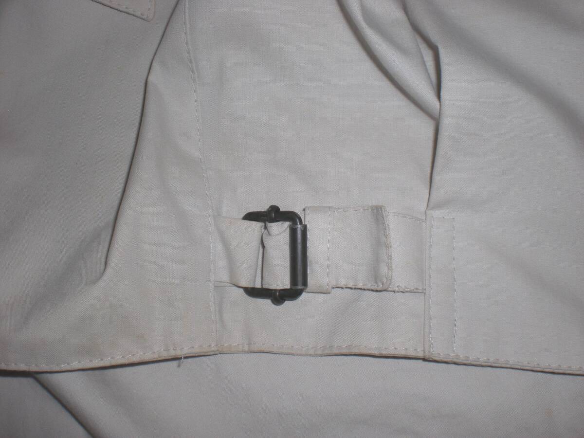 内側左にボタン付きポケット、裾左右にアジャスタブルベルト。