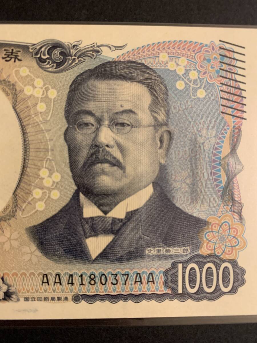 新紙幣  AA-AA券 ピン札 激レア  新千円札  北里柴三郎 新札   日本紙幣  1000円札 新札 ピン札